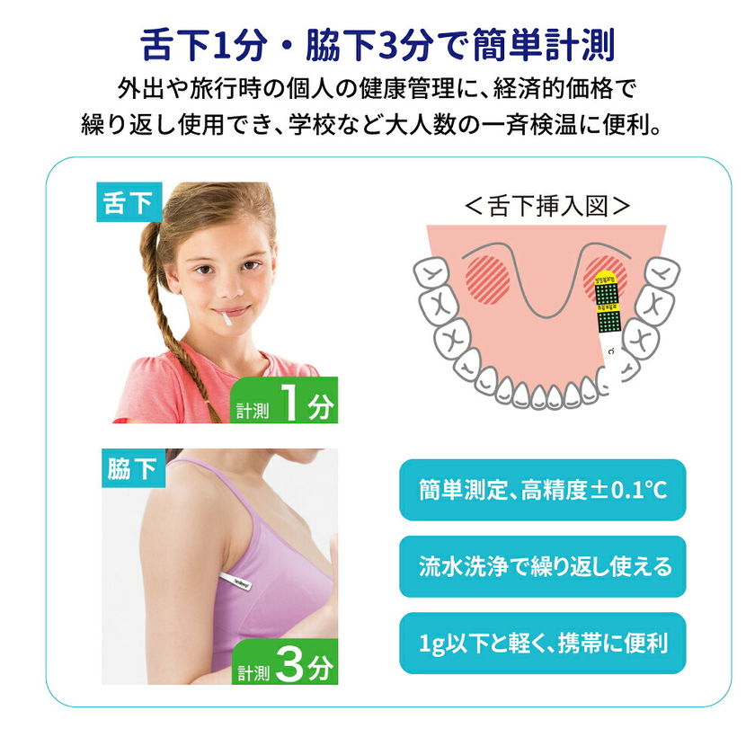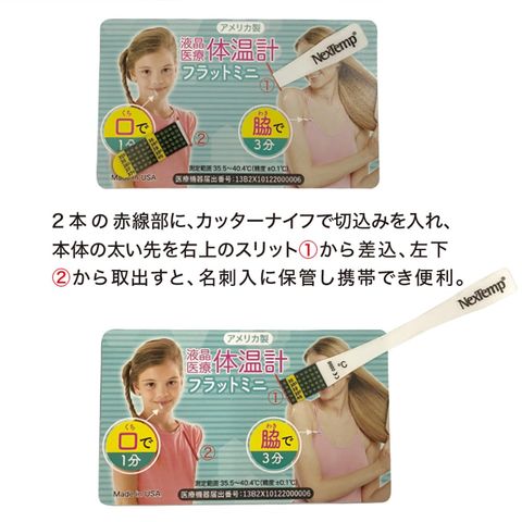 液晶体温計フラットミニ 単品 防災グッズ 体温計 医療用品 検温 スティックタイプ 救急 水銀不使用 薄型 軽量 個包装 舌下1分 脇下3分 カード型 電池不要 旅行 アウトドア 避難 災害 NexTemp (メール便150個まで)