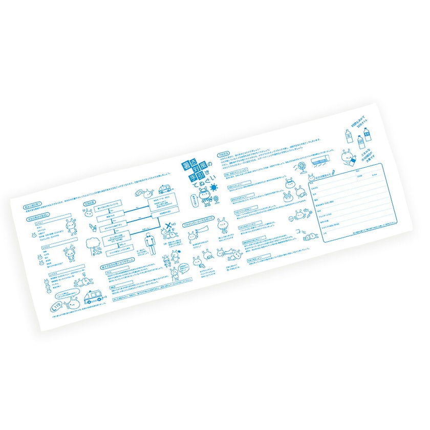 【メール便OK(4個まで)】防災グッズ 暑さ対策の手引き手ぬぐい 1000×350mm 応急処置マニュアル(手拭い 防災タオル 三角巾 レスキュー 防災手帳 防災セット 救急セット 避難セット 災害時応急処置セット