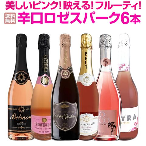 【送料無料】美しいピンク!映える!フルーティ!すべて辛口ロゼスパークリングワイン6本セット!