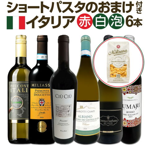 【送料無料★100セット限り】ショートパスタのおまけ付き★バラエティ豊かなイタリアワイン6本セット!!