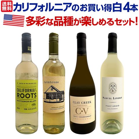 【送料無料】カリフォルニア好きのためのお買い得白ワイン4本セット!