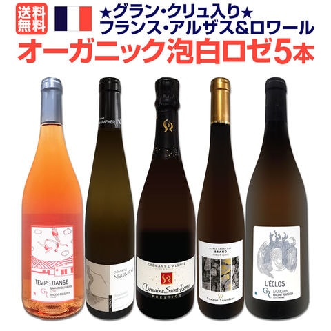 【送料無料】★当店独自輸入★グラン・クリュ入り★フランス・アルザス&ロワールのオーガニック泡白ロゼ5本セット!