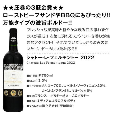 ワインコンクールで数々のテイスターに数百、数千というワインの中から味わいで選び抜かれた信頼のゴールドメダル獲得ボルドー!