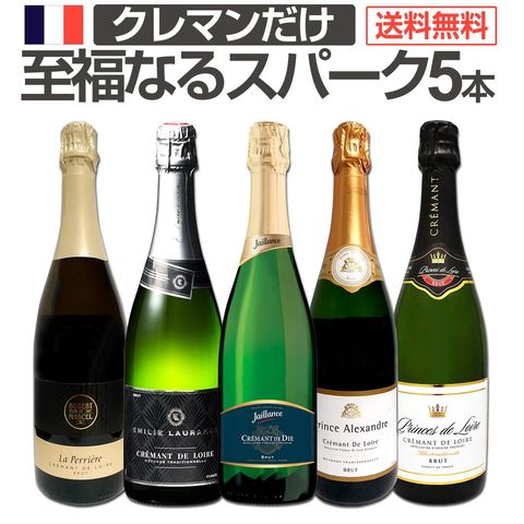 【送料無料】第18弾!ぜんぶクレマン!フランスの高級瓶内2次発酵の伝統製法!クレマンだけの至福なるスパークリングワインセット5本!