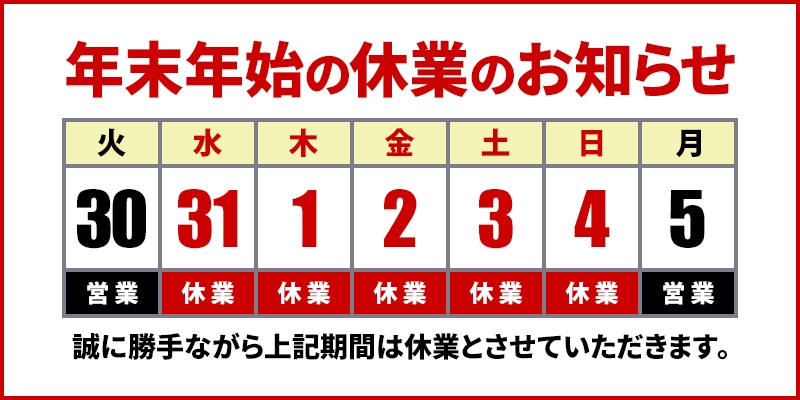 - 12月29日12時59分までのご注文で年内発送、以降のご注文は1月5日以降順次発送いたします。