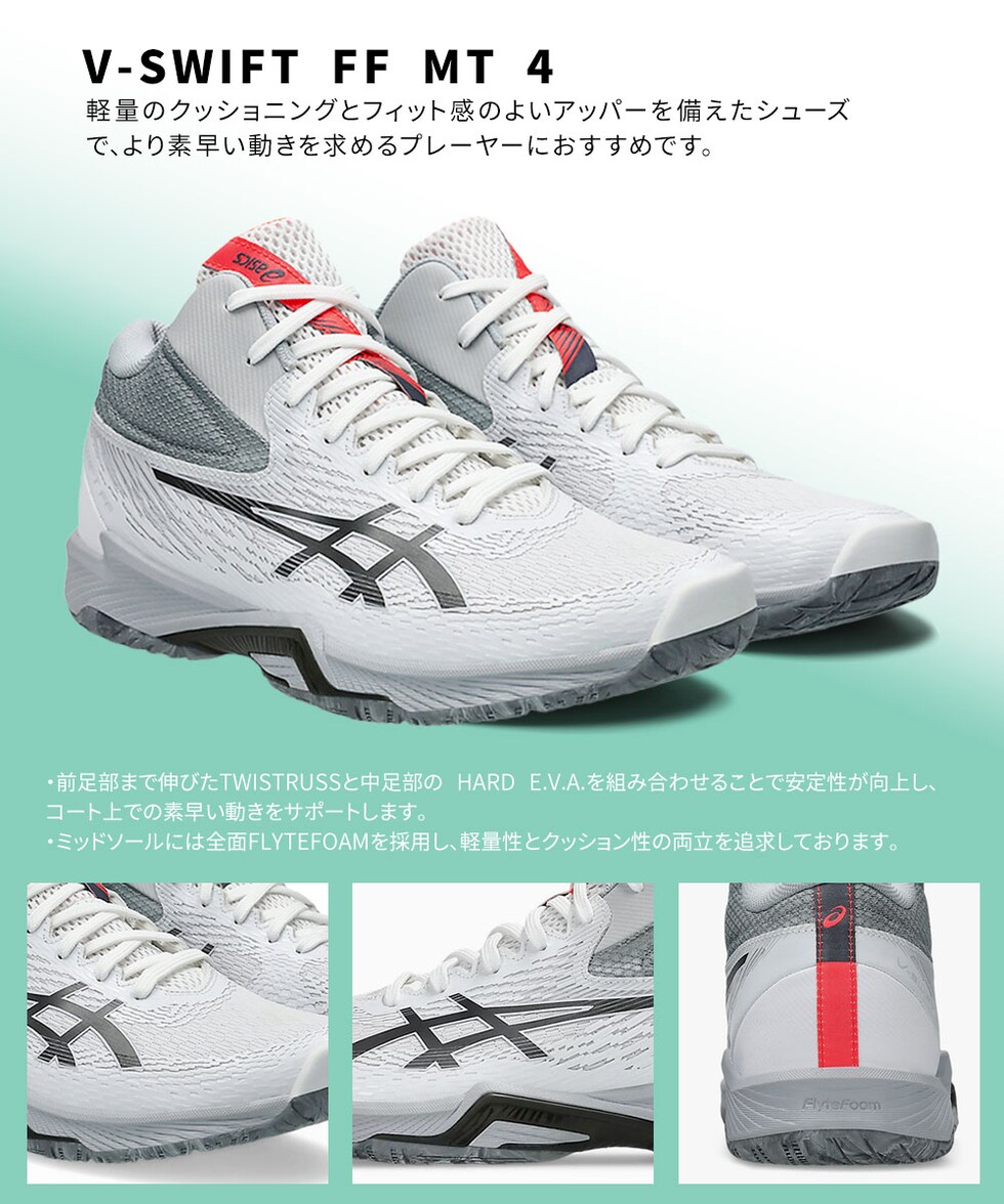アシックス バレーボール シューズ レディース メンズ ミッドカット 軽量 スポーツ 部活 ジム 紐 ユニセックス 靴 スニーカー V-SWIFT FF MT 4 1053A064 asics
