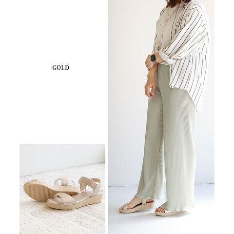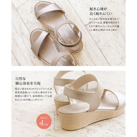 程よい高さの4cmウェッジソールが、脚を自然に長く見せながらも、安定感は抜群。