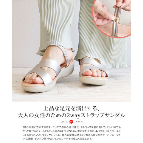 サンダル レディース 疲れない 日本製 2way ストラップ ウェッジソール 美脚 軽量 歩きやすい 履きやすい 疲れにくい 滑りにくい ヒール 通勤 32352
