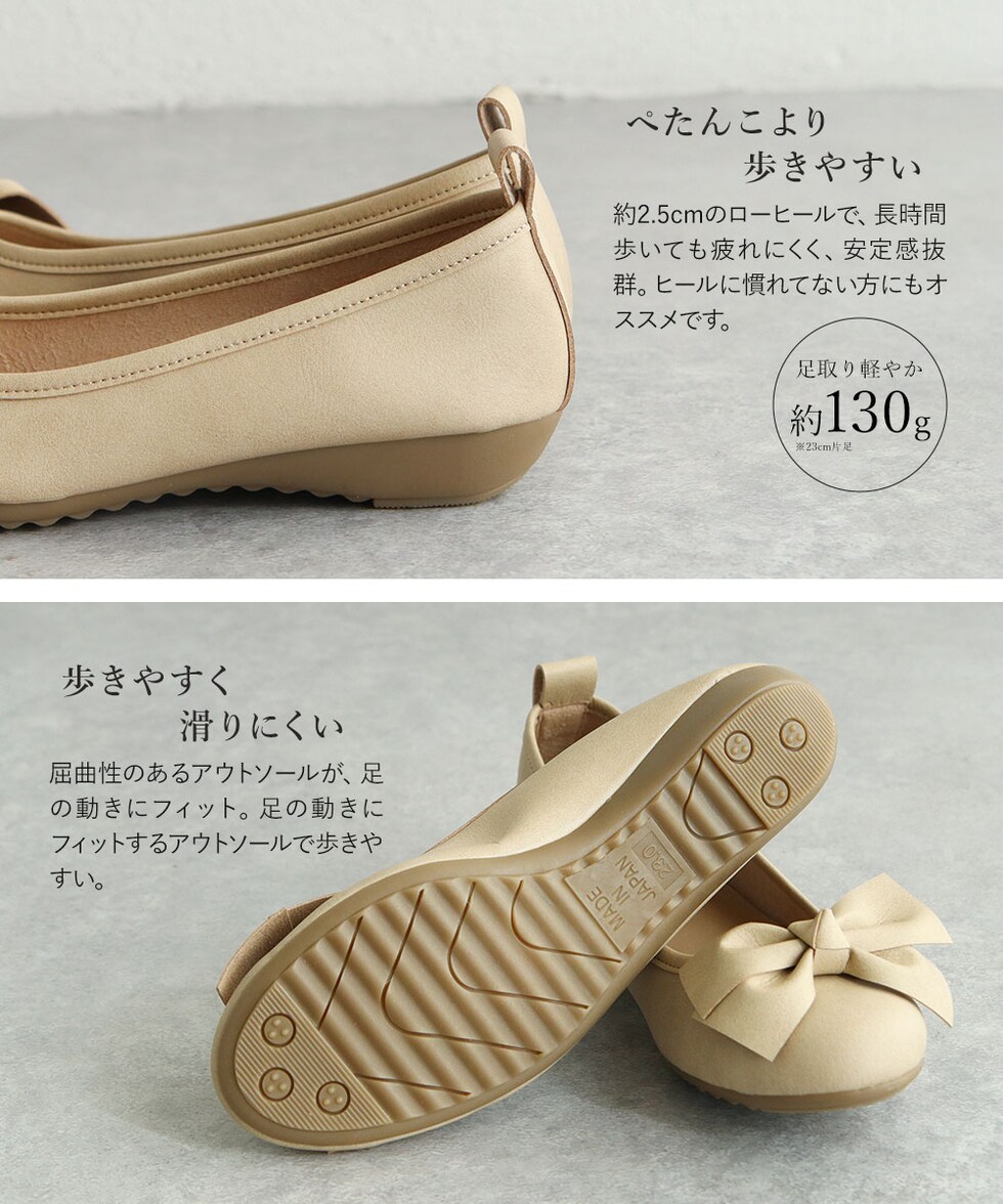約2.5cmのローヒールで、長時間歩いても疲れにくく、安定感抜群。