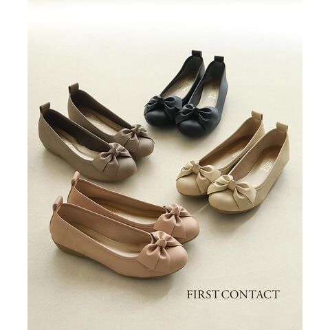 ファーストコンタクト パンプス レディース 日本製 ウェッジソール リボン 靴 黒 ブラック ベージュ ピンク FIRST CONTACT 39260