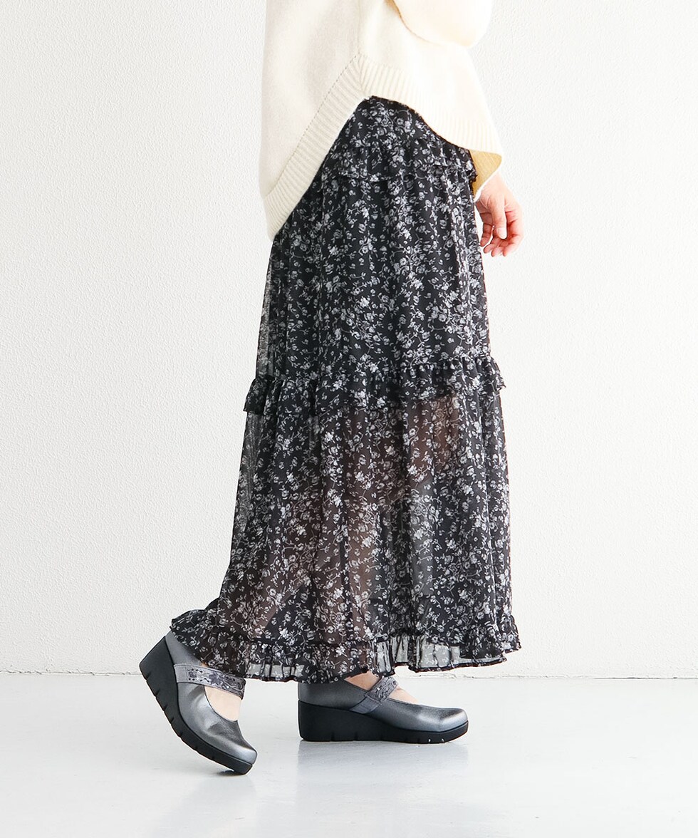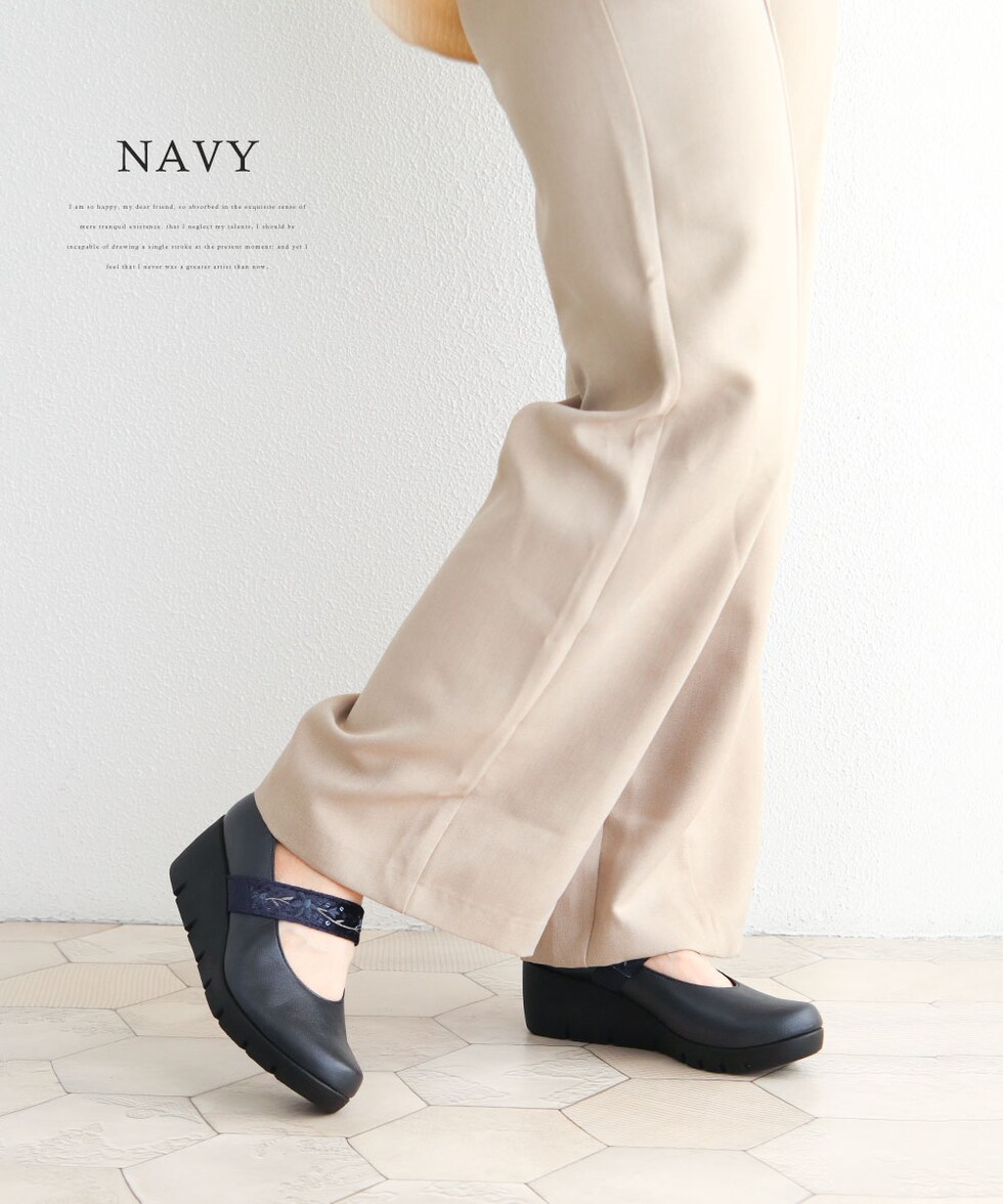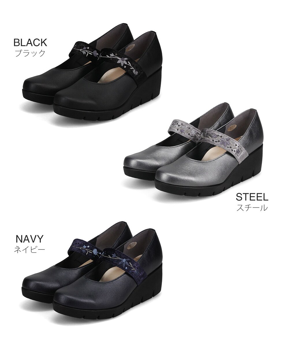 ファーストコンタクト パンプス レディース ウェッジソール 5.5センチ ストラップ 婦人靴 ラウンドトゥ 花柄 ネイビー グレー 日本製 39611