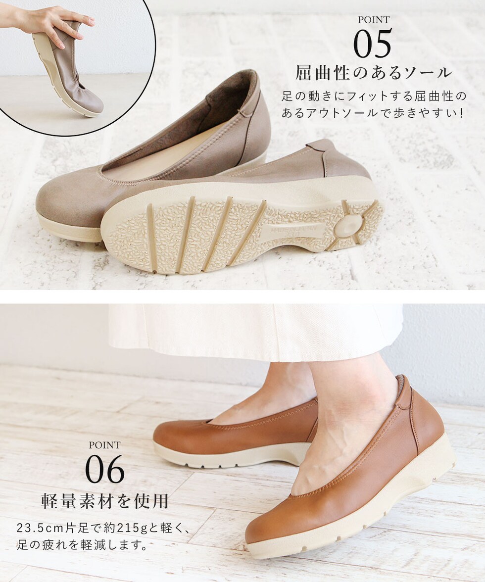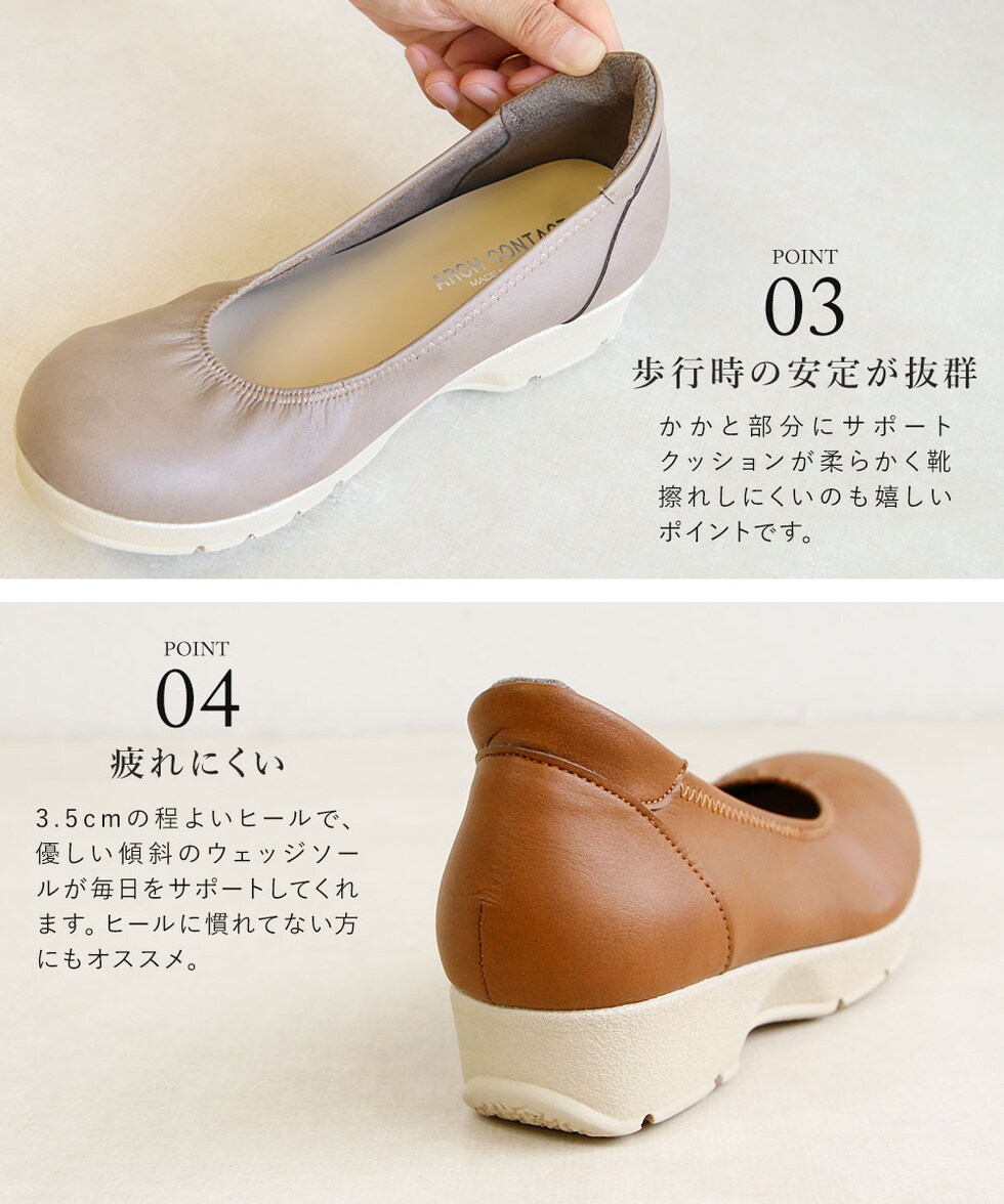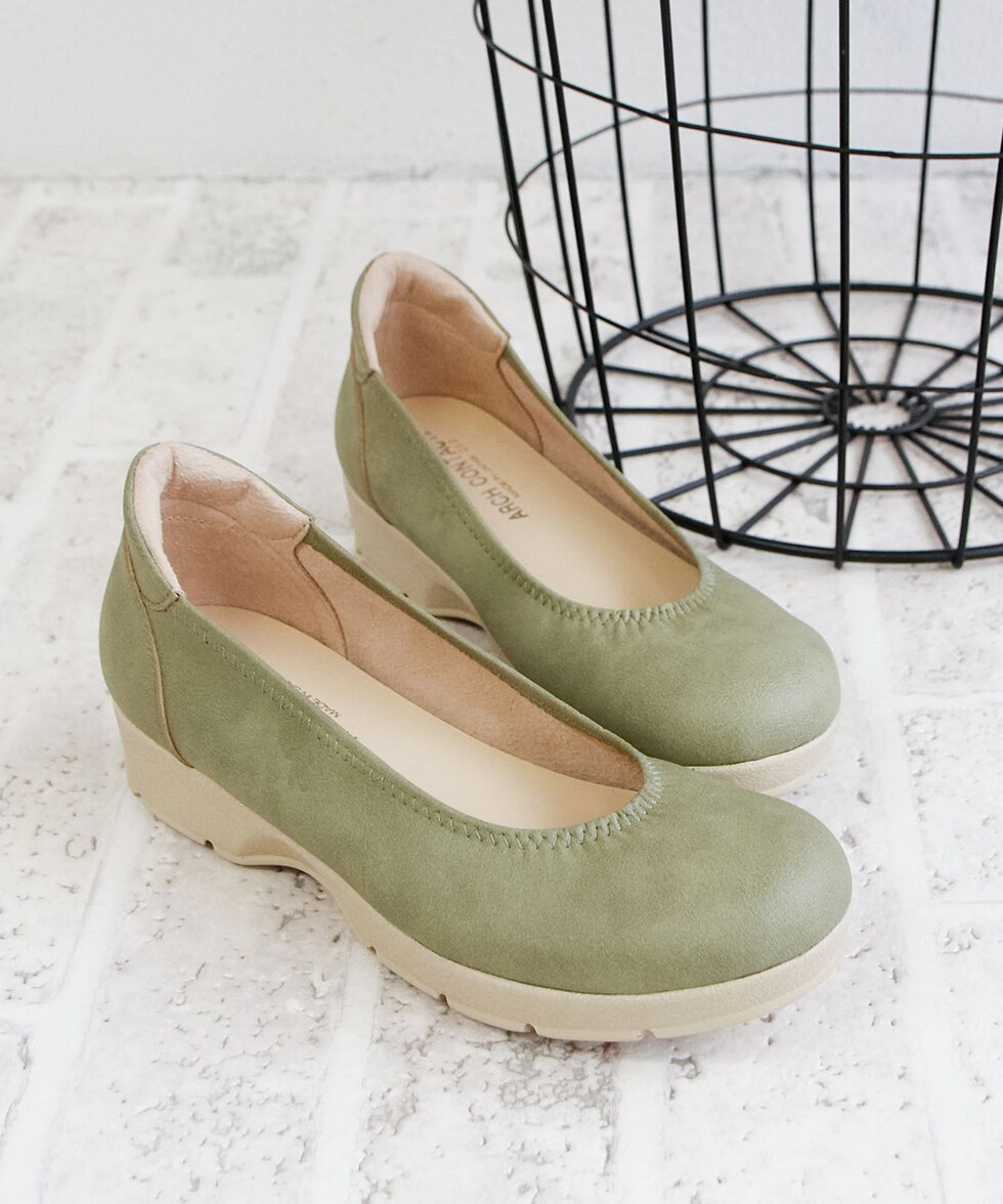 アーチコンタクト パンプス 痛くない 柔らかい 靴 レディース 日本製 ウェッジソール ラウンドトゥ プレーン 軽量 通勤 オフィス 49540 ARCH CONTACT