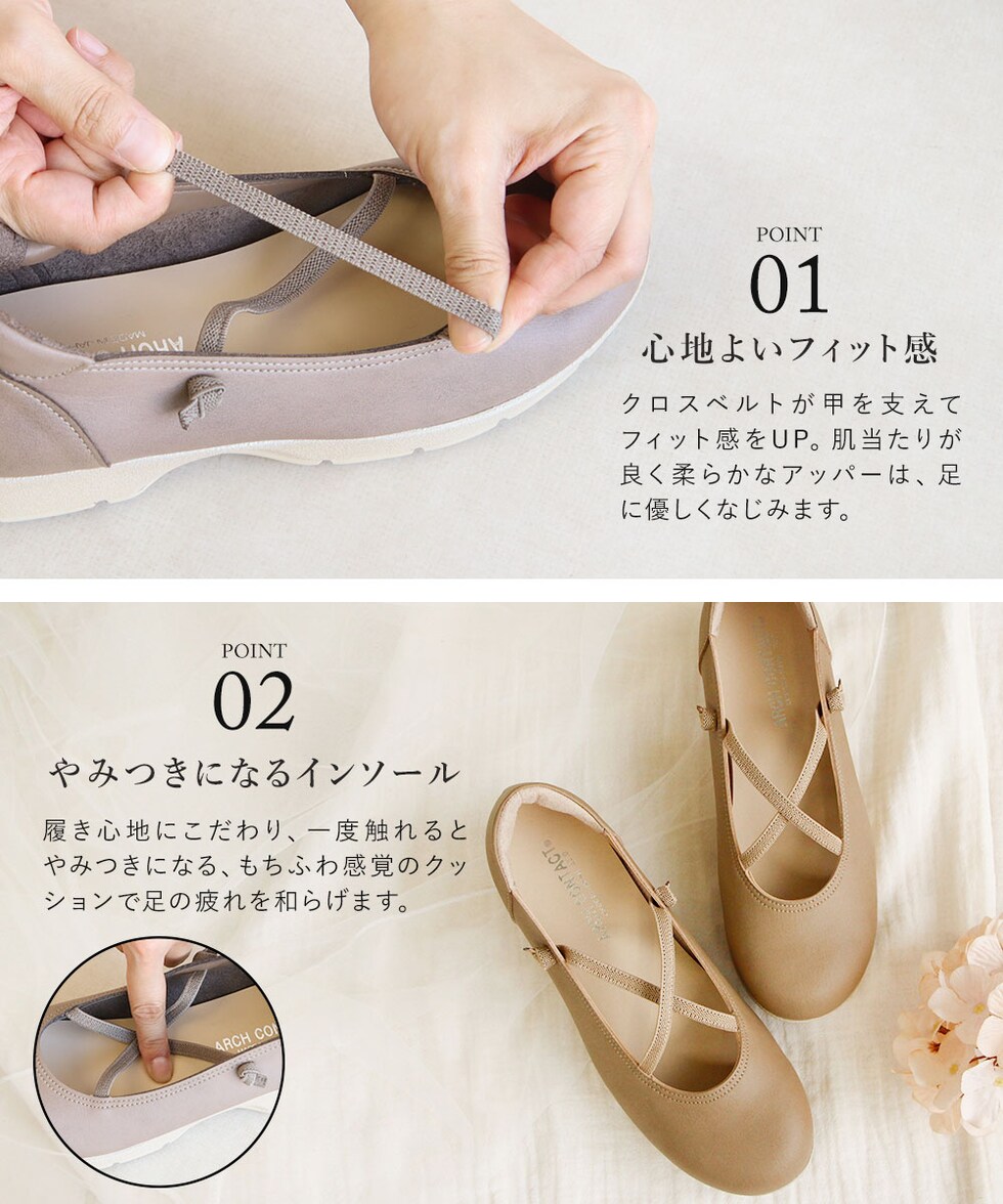 脱げにくく心地よいフィット感で、足元のちょこっとストレスを軽減。