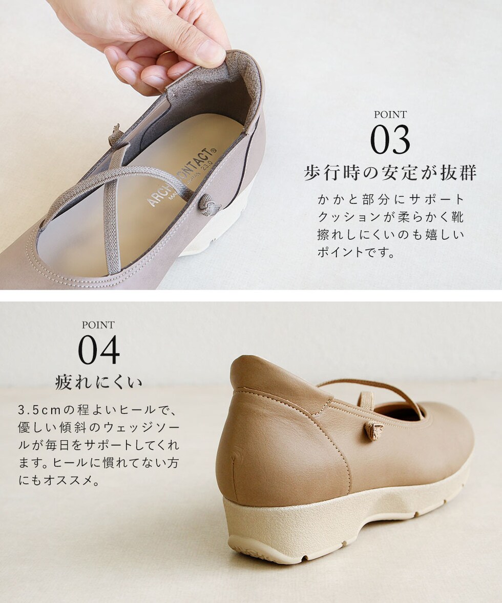 アーチコンタクト パンプス 痛くない 柔らかい 靴 レディース 日本製 ウェッジソール ラウンドトゥ プレーン 軽量 通勤 オフィス 49542 ARCH CONTACT