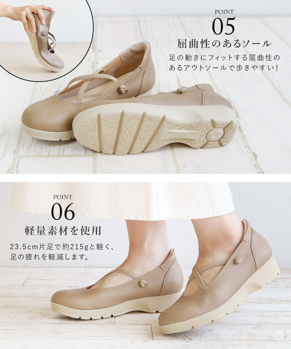 優しい傾斜のウェッジソールが毎日をサポートしてくれます。