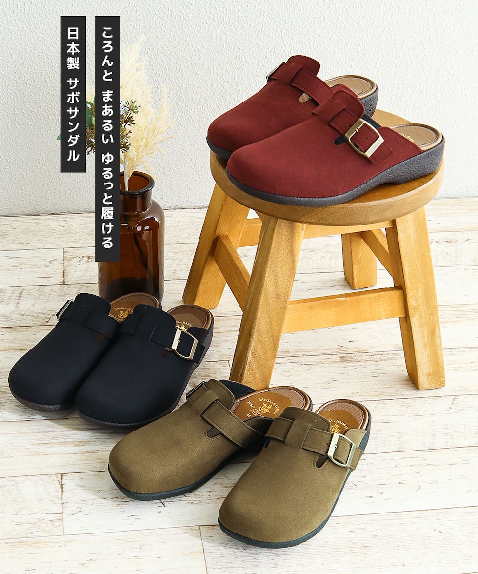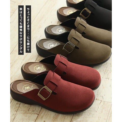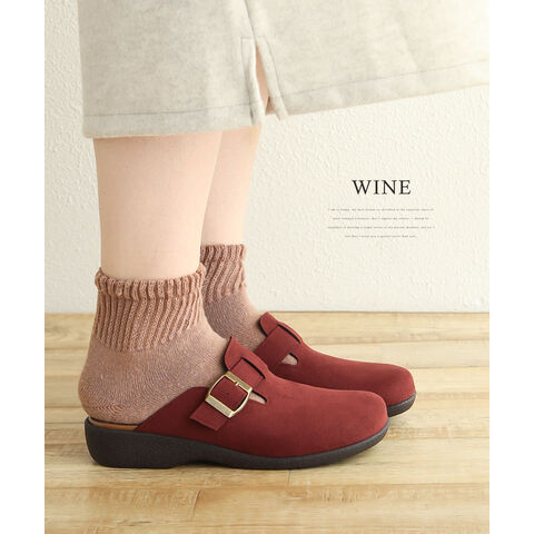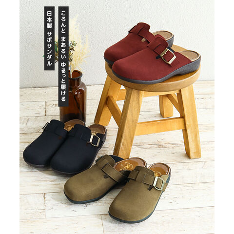 サボ サンダル レディース 秋冬 クロッグ ローヒール ウェッジソール コンフォート オフィス 靴 日本製 ブラック オーク ワインレッド 6894