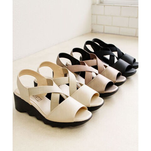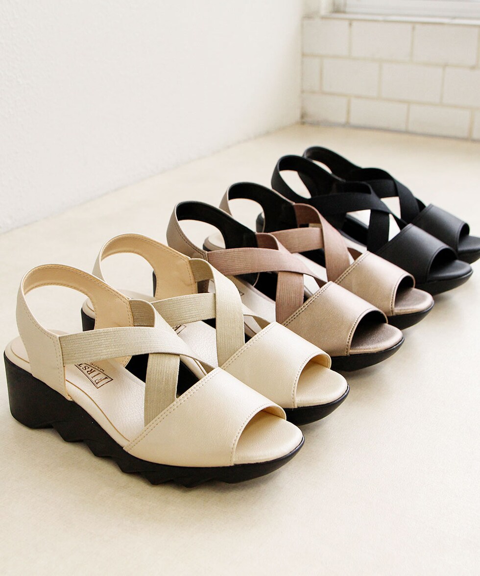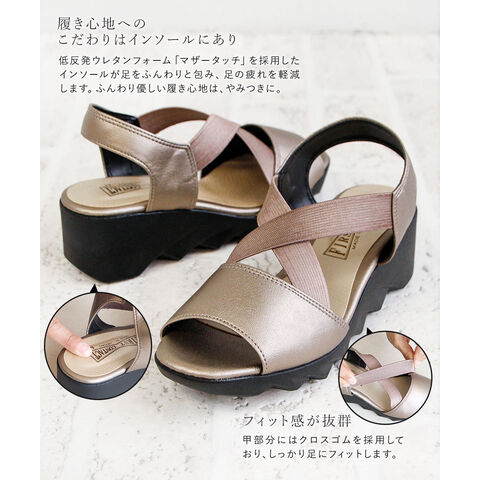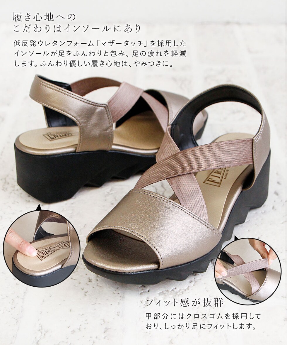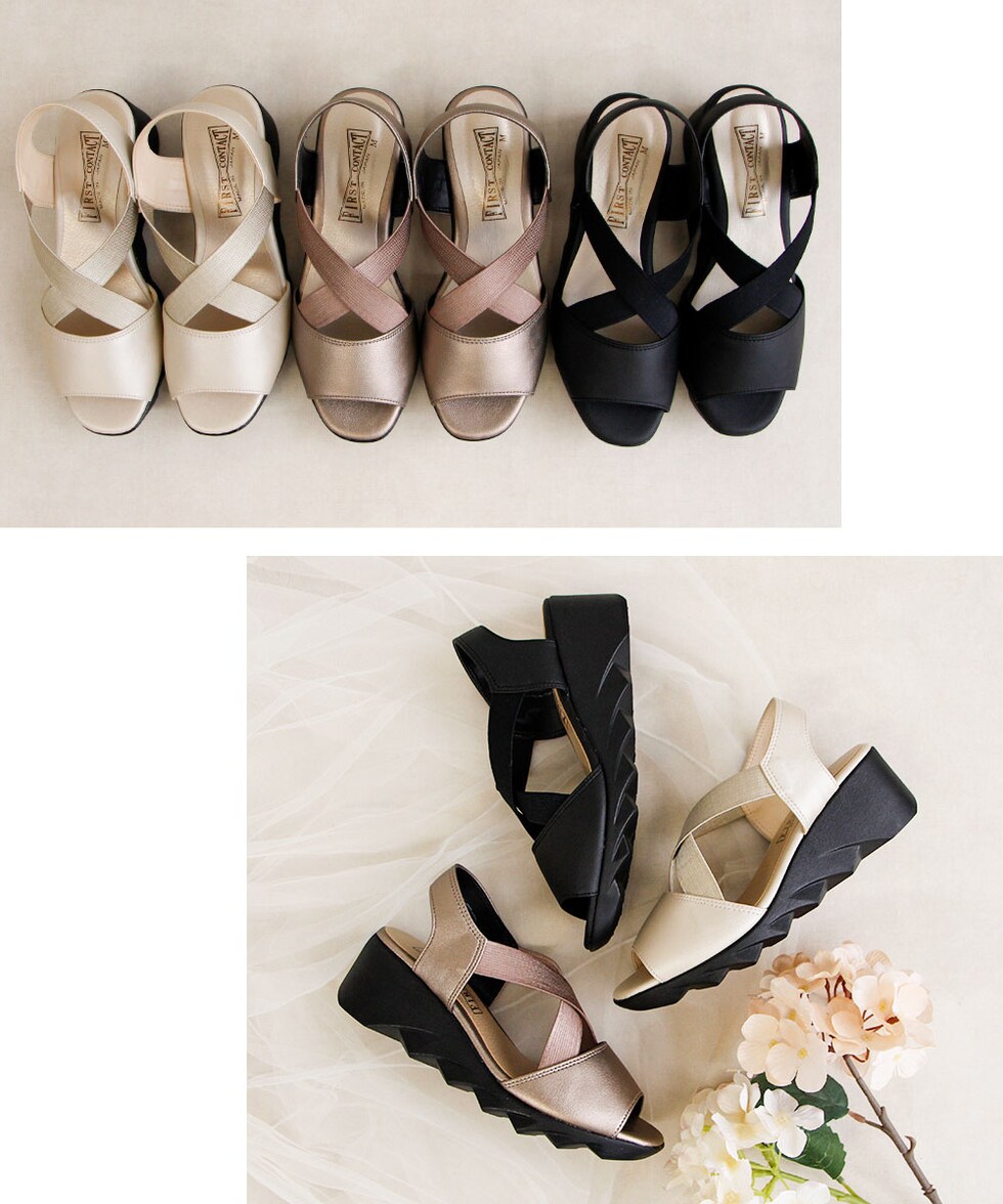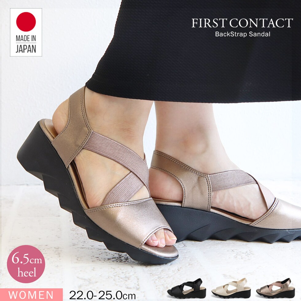 ファーストコンタクト サンダル レディース 日本製 ウェッジソール ゴム クロスバンド 美脚 軽量 履きやすい 疲れにくい ヒール 92017 FIRST CONTACT