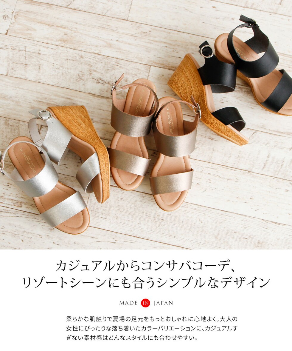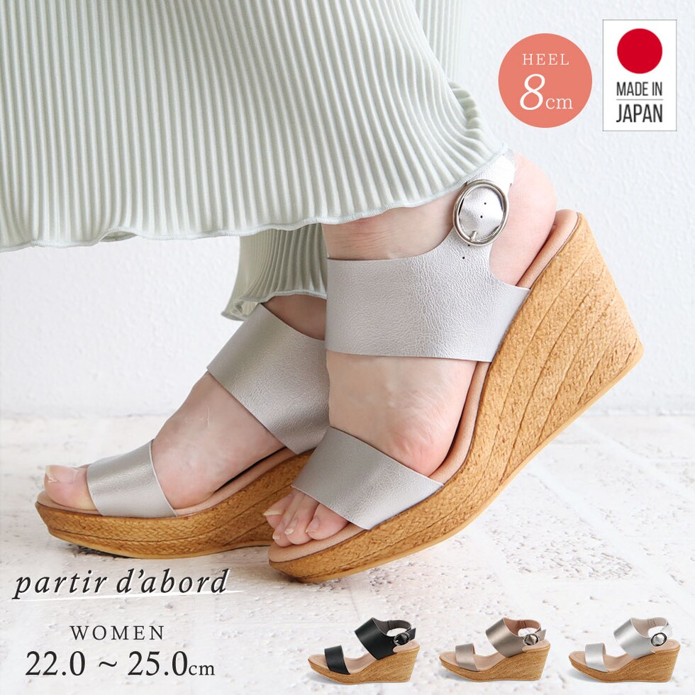 サンダル レディース 日本製 ストラップ ウェッジソール 美脚 脚長効果 軽量 歩きやすい ハイヒール 夏 大人 カジュアル ナチュラル シンプル 92957
