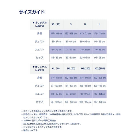 ■サイズ表(ユニセックス・メンズ)