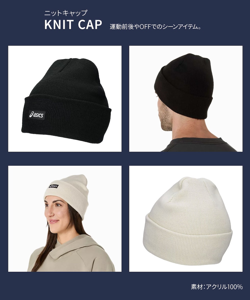 運動前後やOFFでのシーンアイテムのニットキャップ