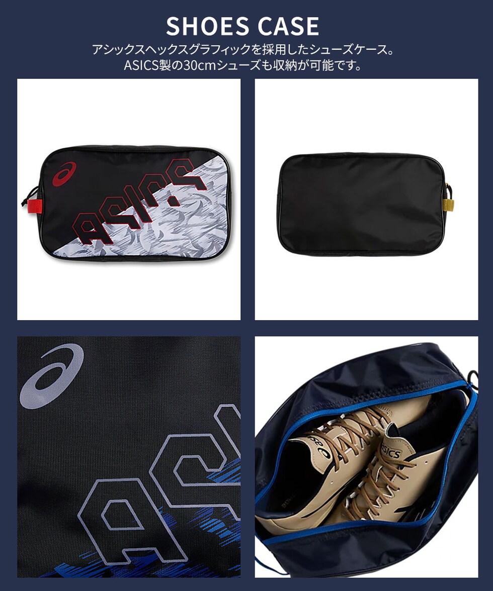 アシックスヘックスグラフィックを採用したシューズケース。