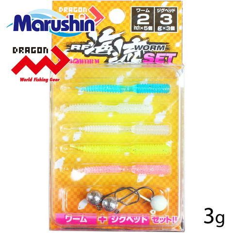 マルシン ジグヘッド ワーム 付き RF海流SET 3g 5色セット 発光 ルアー オモリ ハリ ライトソルトゲーム ソルトウォーター 海釣り シーバス バスフィッシング メバル カマス メッキ アジ イサキ チヌ クロダイ サバ スズキ タチウオ ヒラメ コチ