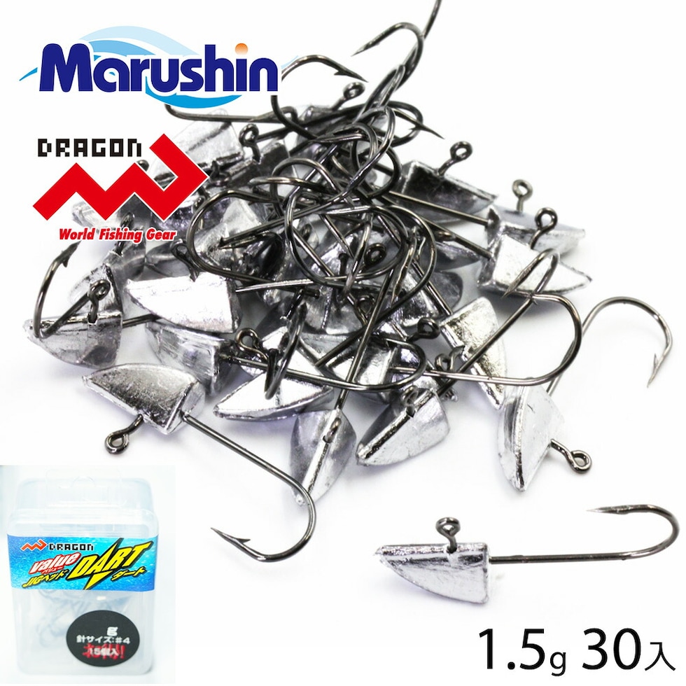 マルシン バリューパック ジグヘッド ダート 30入 1.5g ワーム 刺し ストレートゲイブ 円柱型 オモリ ハリ ライトソルトゲーム ソルトウォーター 海釣り アジング メバリング シーバス バスフィッシング ルアー 根魚 メバル カサゴ アイナメ キジハタ クエ アジ