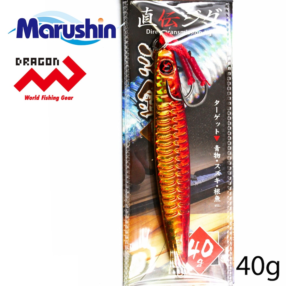 マルシン 直伝ジグ 海釣 レッドゴールド 40g メタルジグ ハードルアー シーバス ルアー ソルトルアー ソルトウォーター ジギング シングルフック ヒラメ マゴチ キジハタ カサゴ メッキ アジ メバル カマス イサキ カツオ ヒラマサ カンパチ