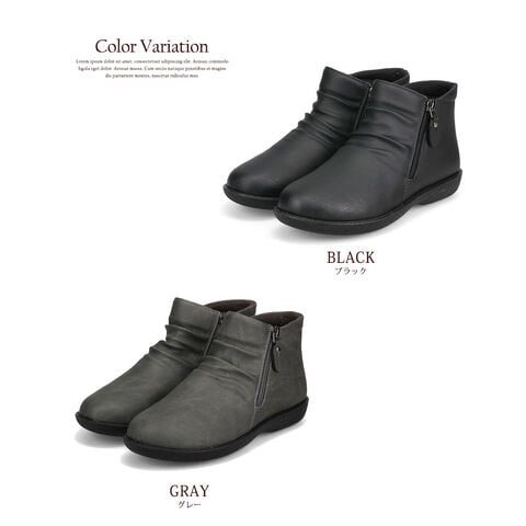 ブーツ ショート レディース 4e 幅広 コンフォートシューズ ファスナー シンプル 女性 母の日 プレゼント 婦人靴 黒 グレー 541-163