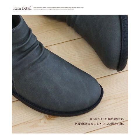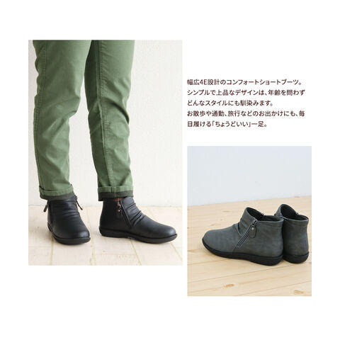 毎日の暮らしを心地よく支える、幅広4E設計のコンフォートショートブーツ。