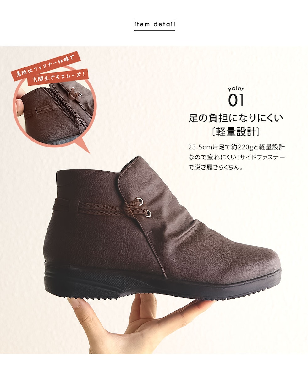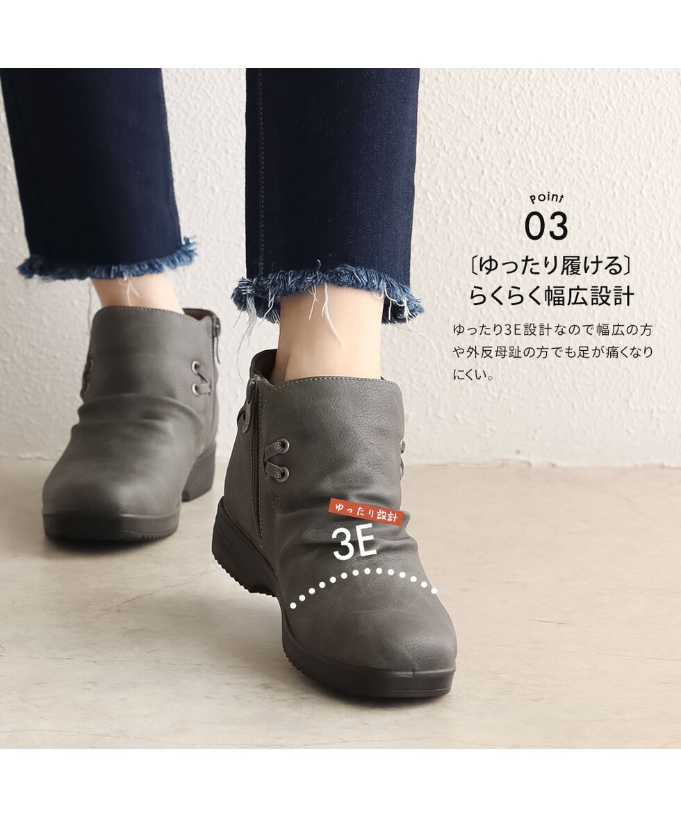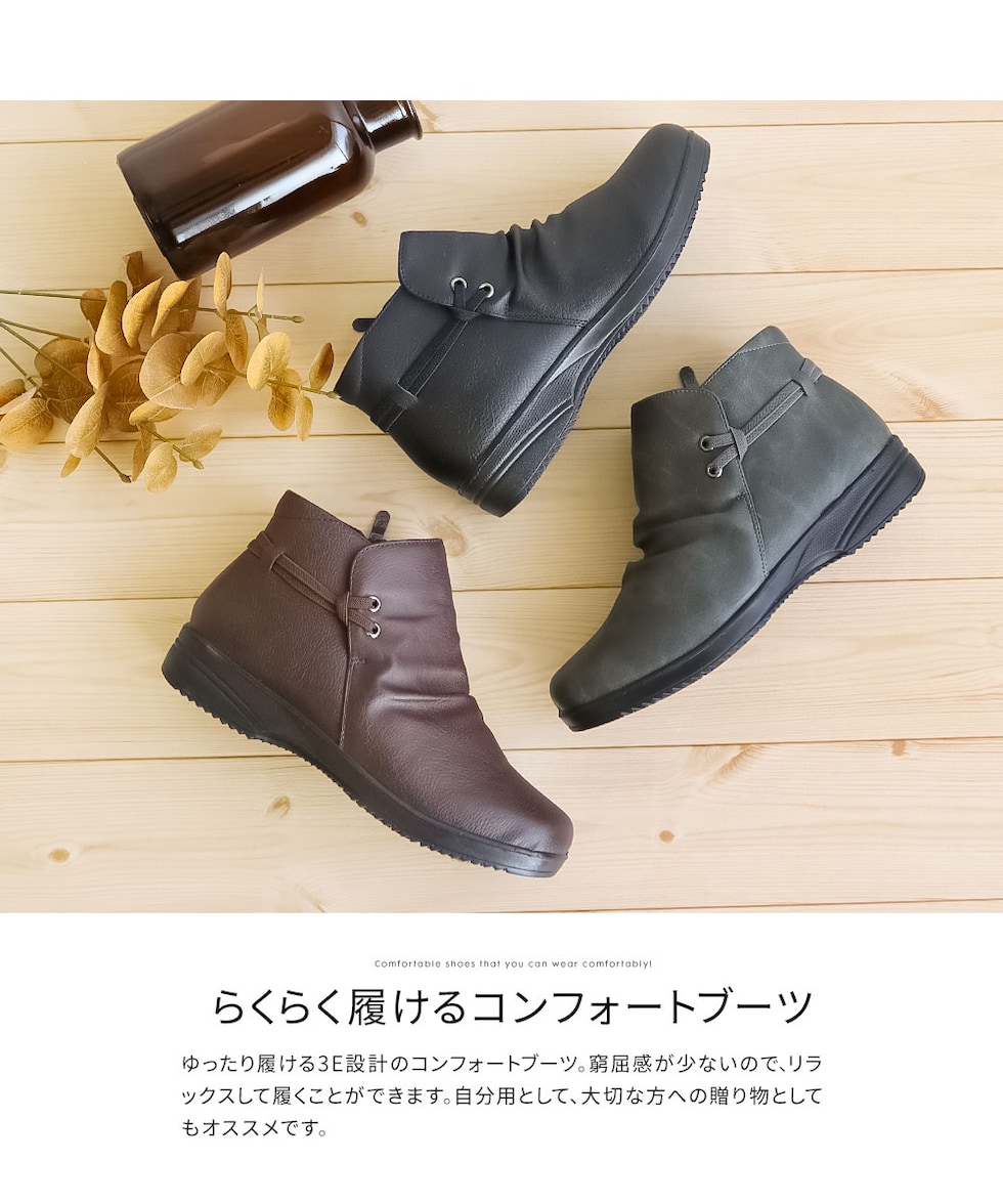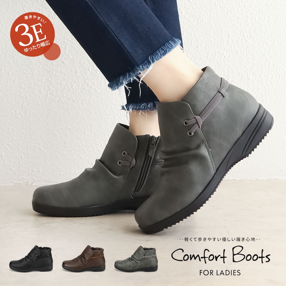 コンフォートブーツ レディース 歩きやすい ローヒール ショートブーツ サイドファスナー 幅広 3e 防滑 軽量 履きやすい アンクルブーツ カジュアルシューズ 軽い 疲れにくい 裏起毛 暖かい 秋 ファスナー付き アンクル丈 通勤 秋 冬 黒 ブラック ブラウン グレー 165