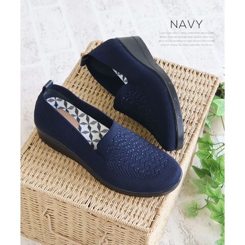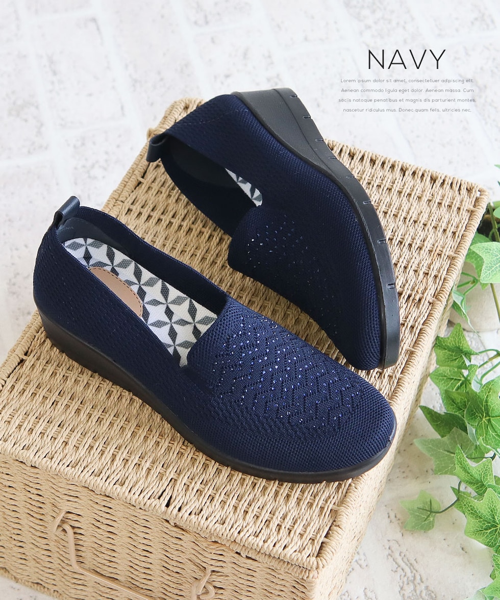 ・柔らかく通気性に優れたニット素材を使用し、ストレスフリーで快適な履き心地。