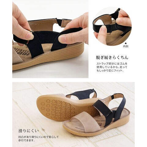サンダル レディース おしゃれ 疲れない ゴム 軽量 走れる 痛くない 歩きやすい オープントゥ バックベルト ウエッジソール カジュアル シンプル 夏 744