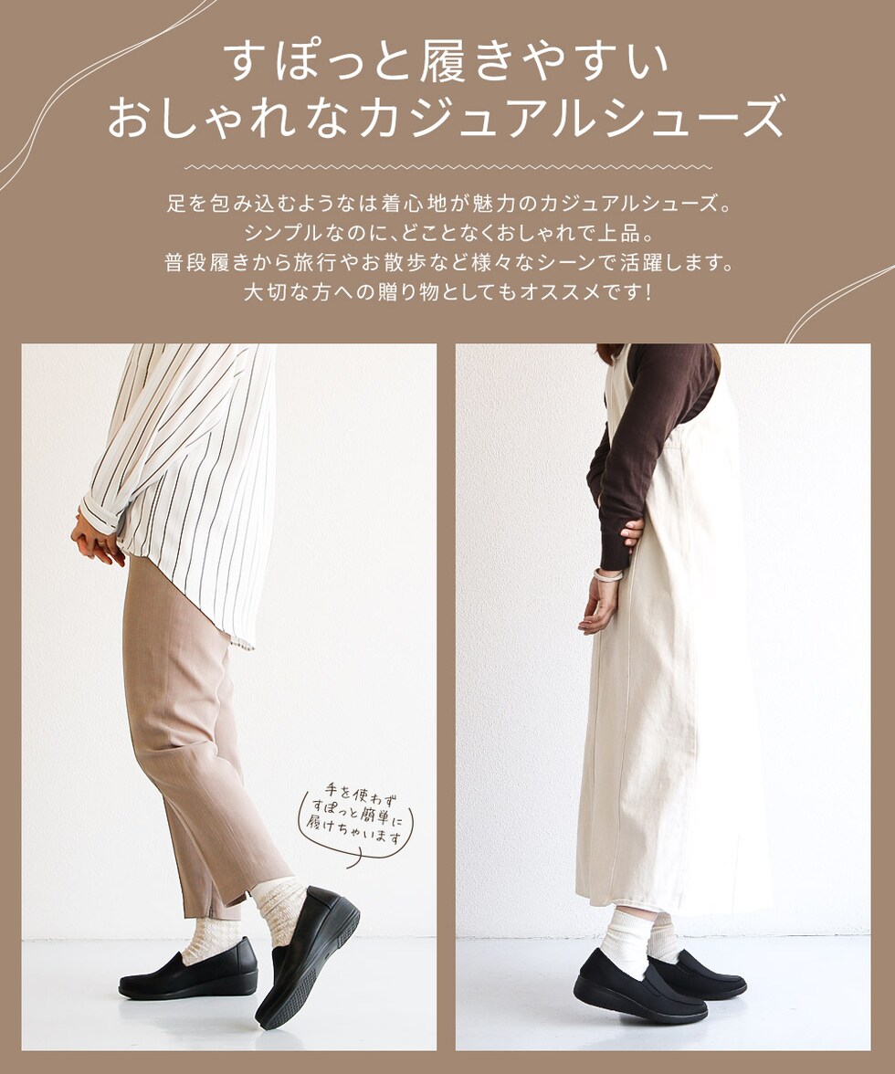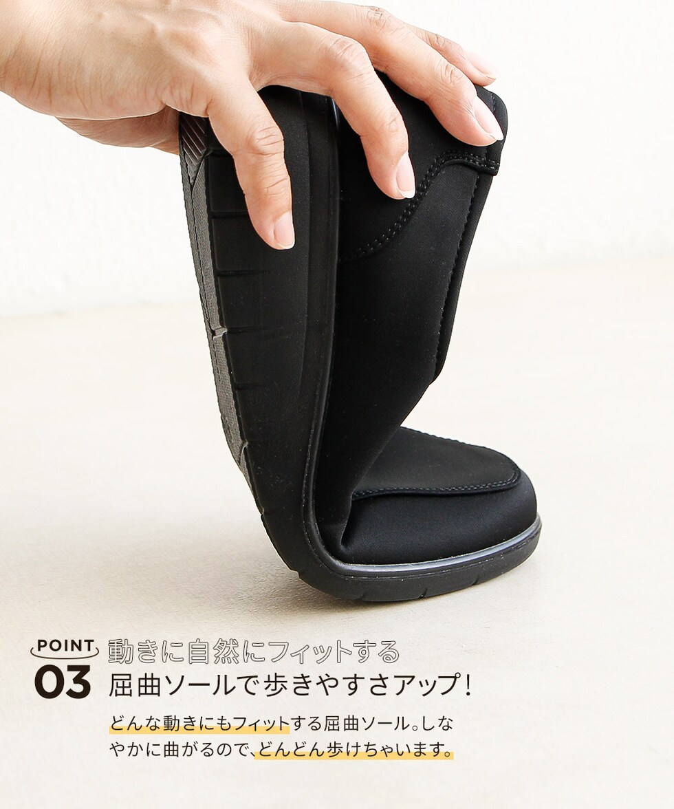 ・柔らかい素材を使用し、ストレスフリーで快適な履き心地。