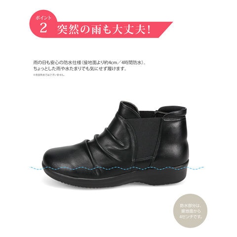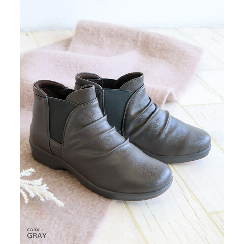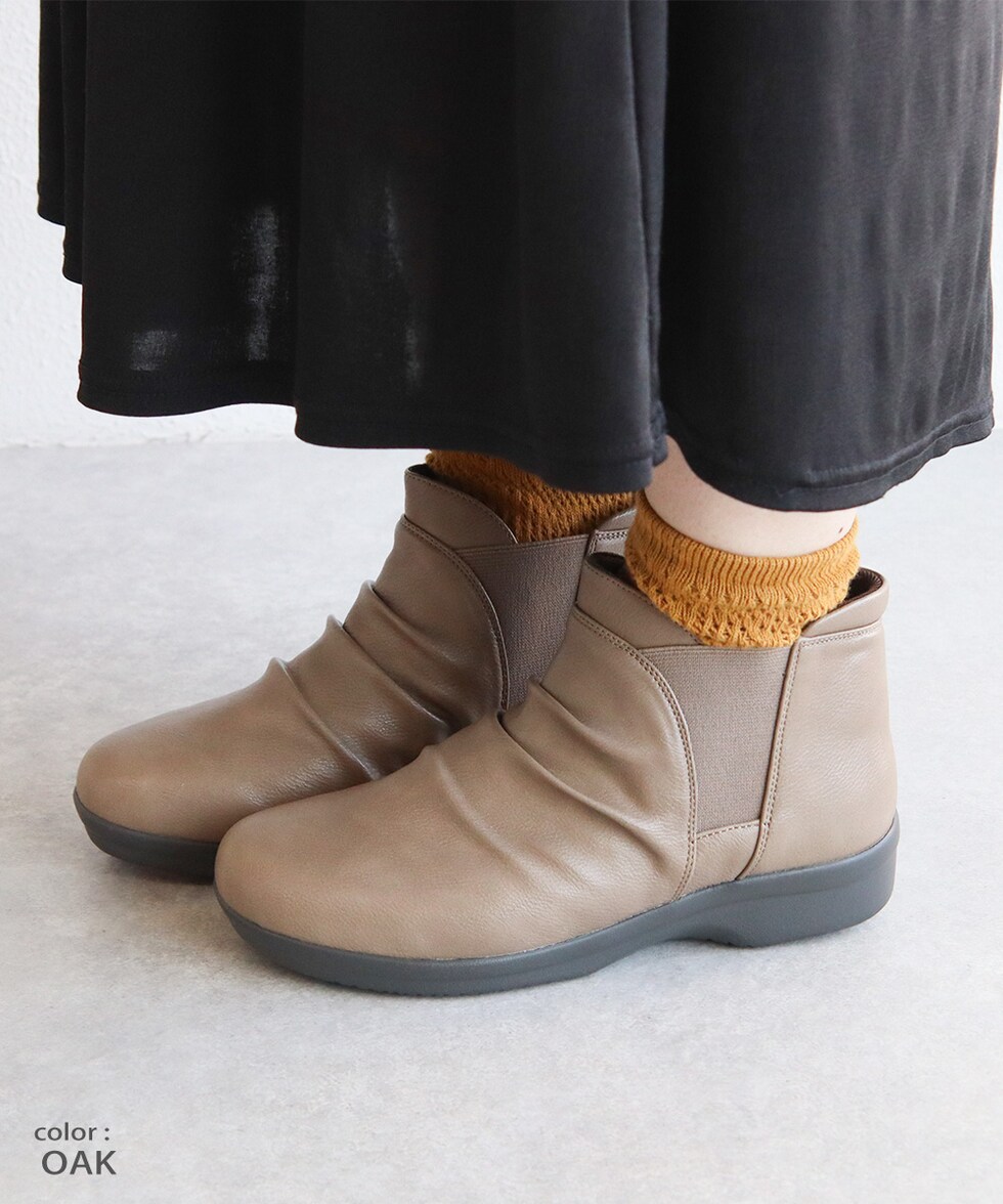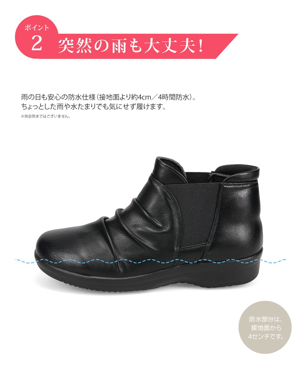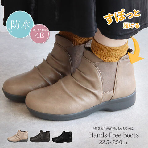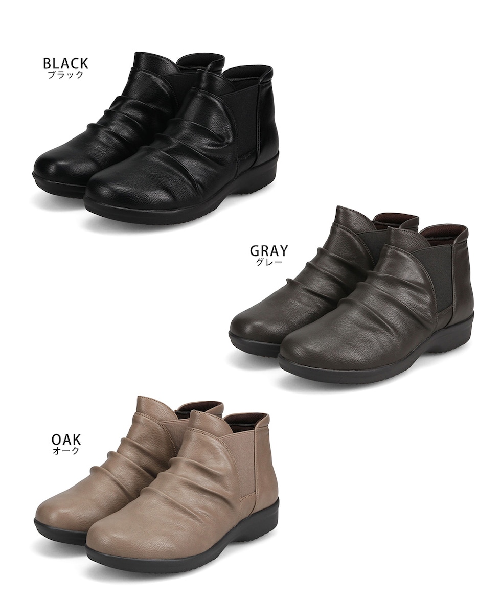 防水 ショートブーツ レディース 歩きやすい 4e 軽量 防滑 サイドゴア ハンズフリー ブーティ 黒 ブラック オーク グレー R-PREMIUM 2857