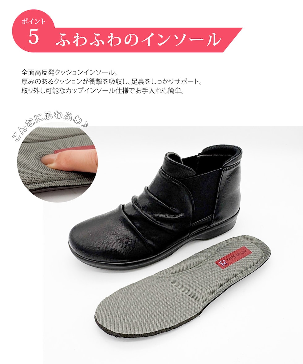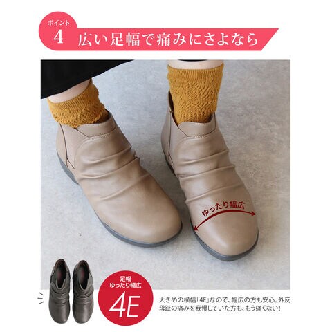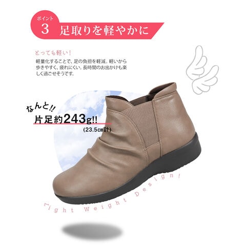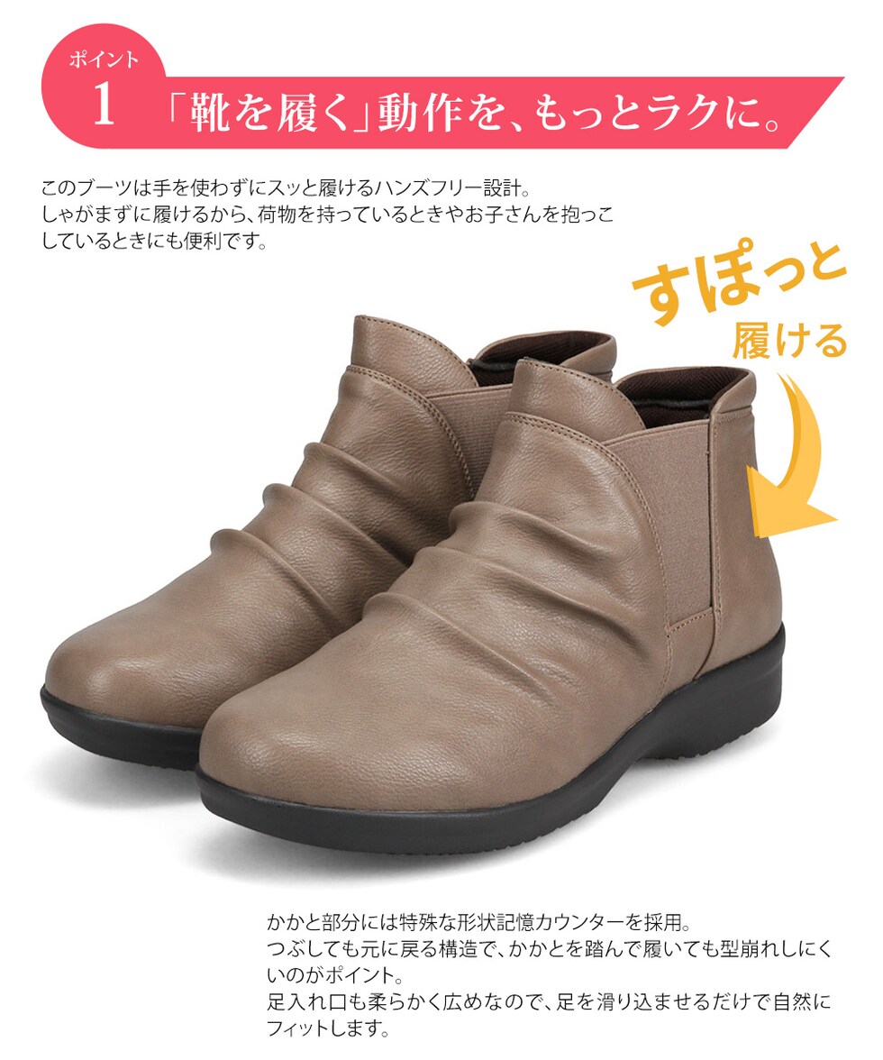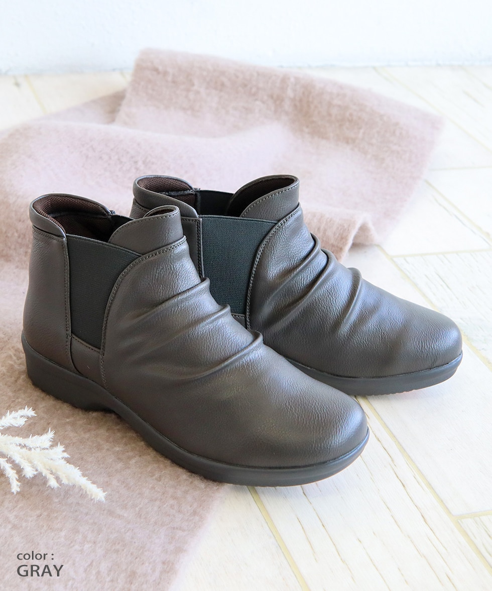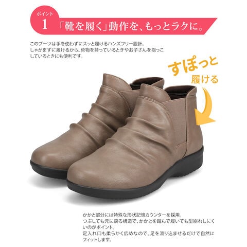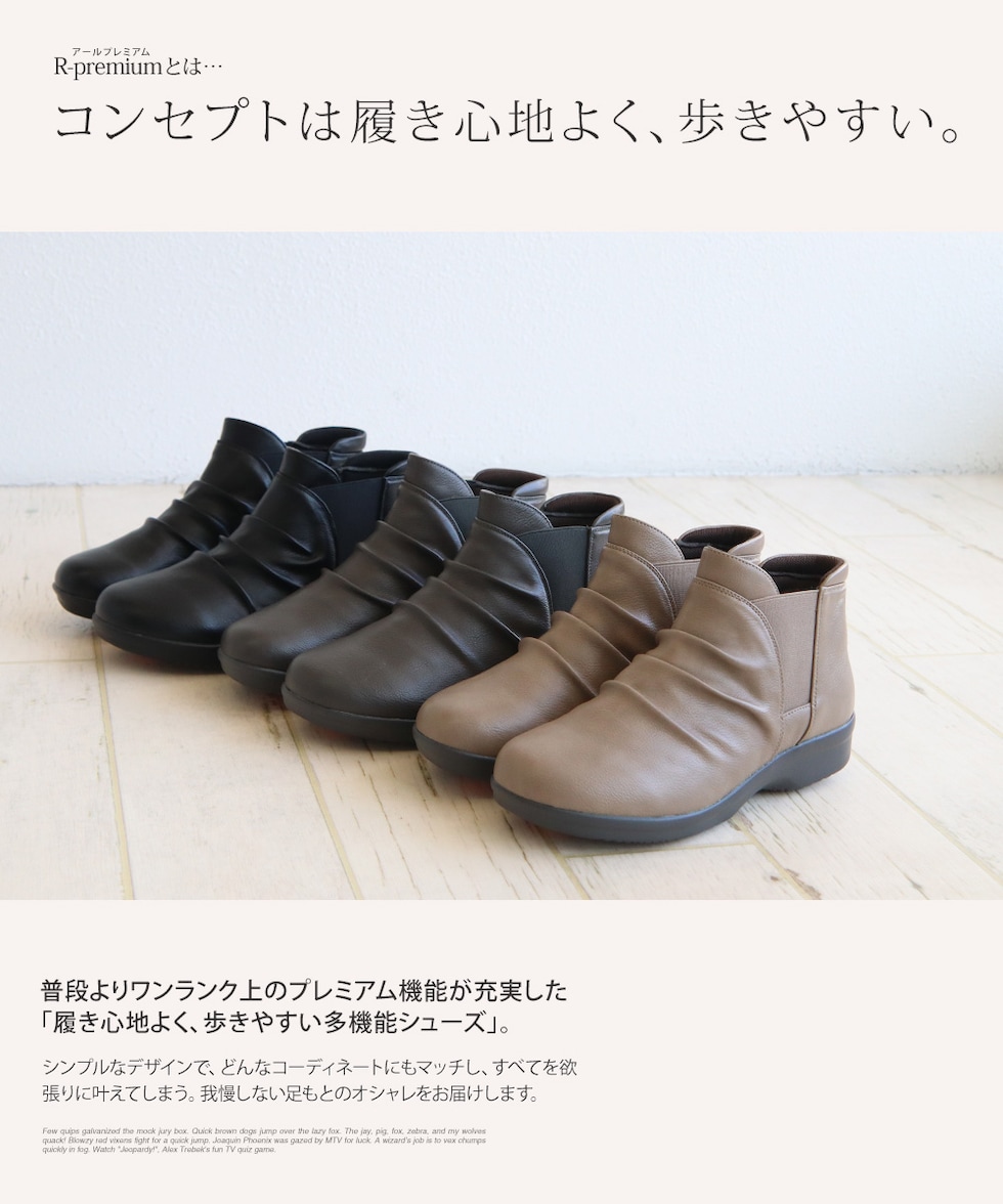 防水 ショートブーツ レディース 歩きやすい 4e 軽量 防滑 サイドゴア ハンズフリー ブーティ 黒 ブラック オーク グレー R-PREMIUM 2857
