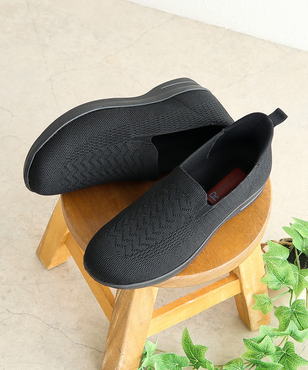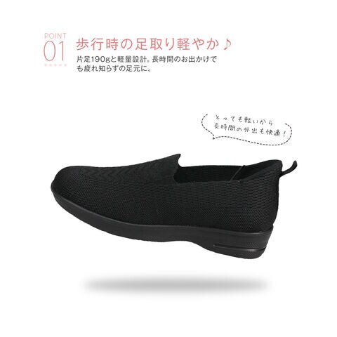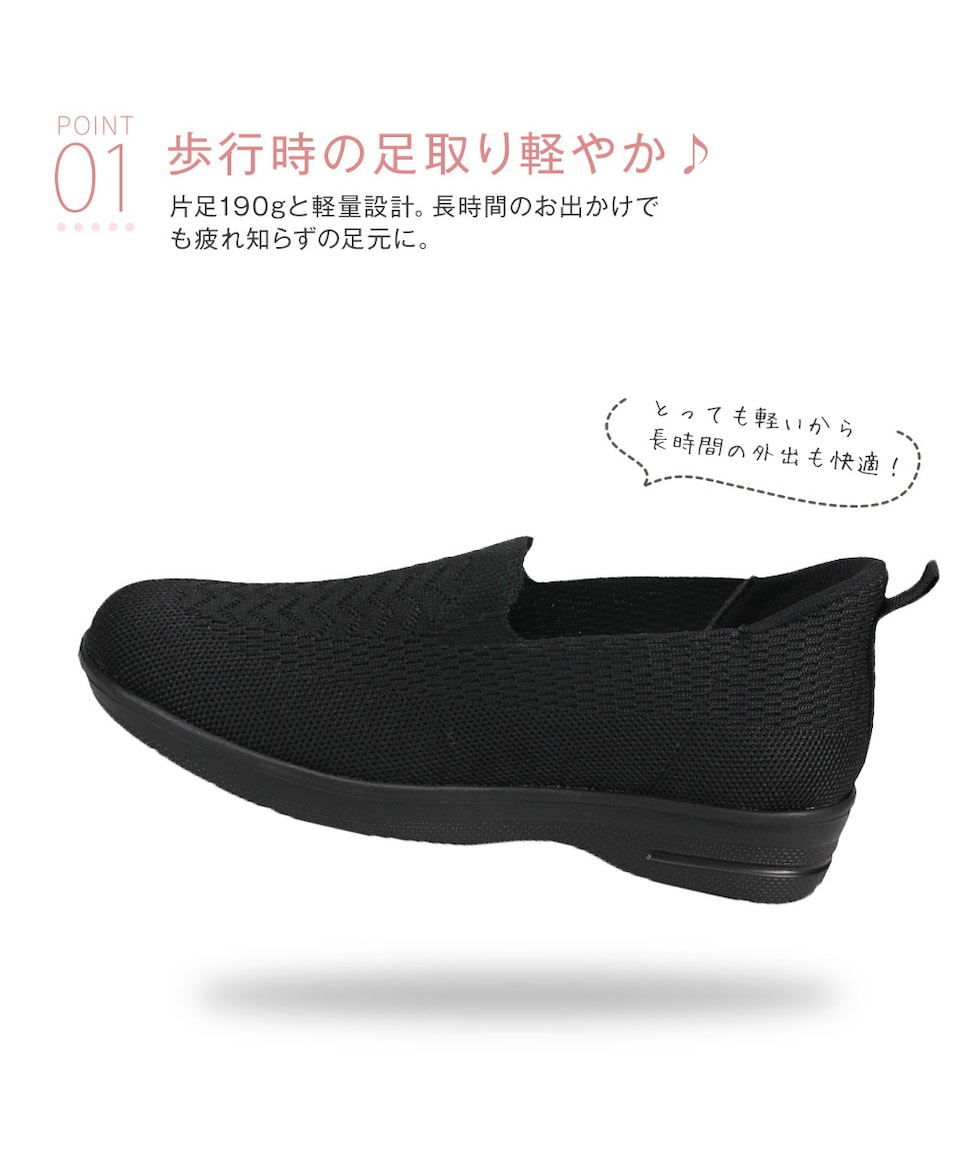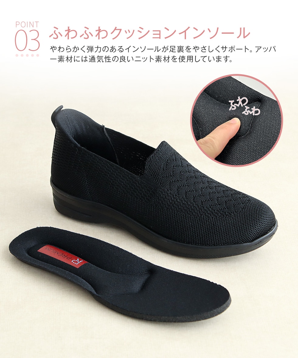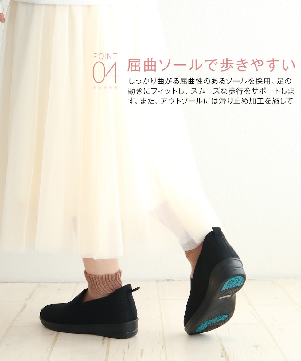 通気性の良いニット素材を使用し、足にやさしくフィット。