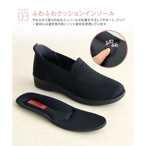 コンフォート シューズ スリッポン レディース 靴 幅広 ゆったり 立ったまま履ける 履きやすい おしゃれ 黒 ブラック R-PREMIUM 423