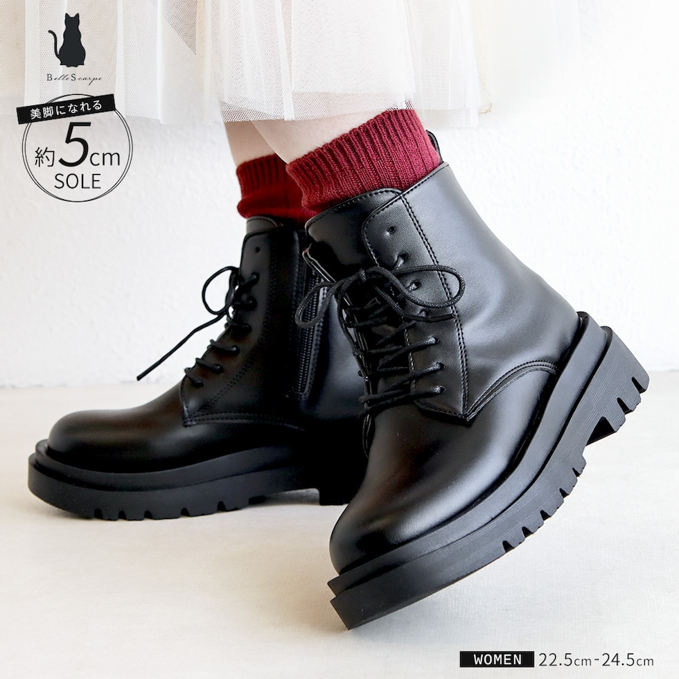 ベルスカルパ ショートブーツ 厚底 レディース 編み上げ 痛くない カジュアル レースアップ 黒 ブラック Belle Scarpe 557-674
