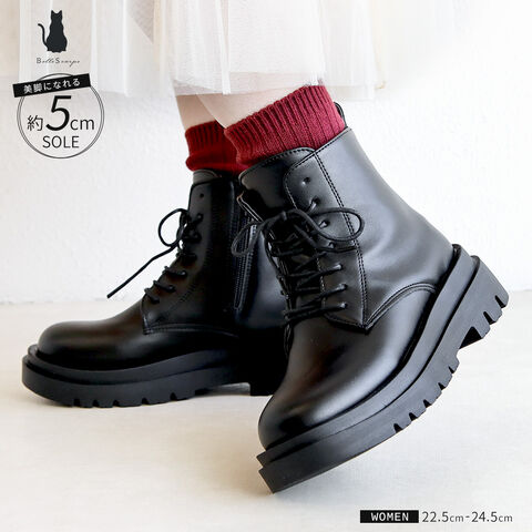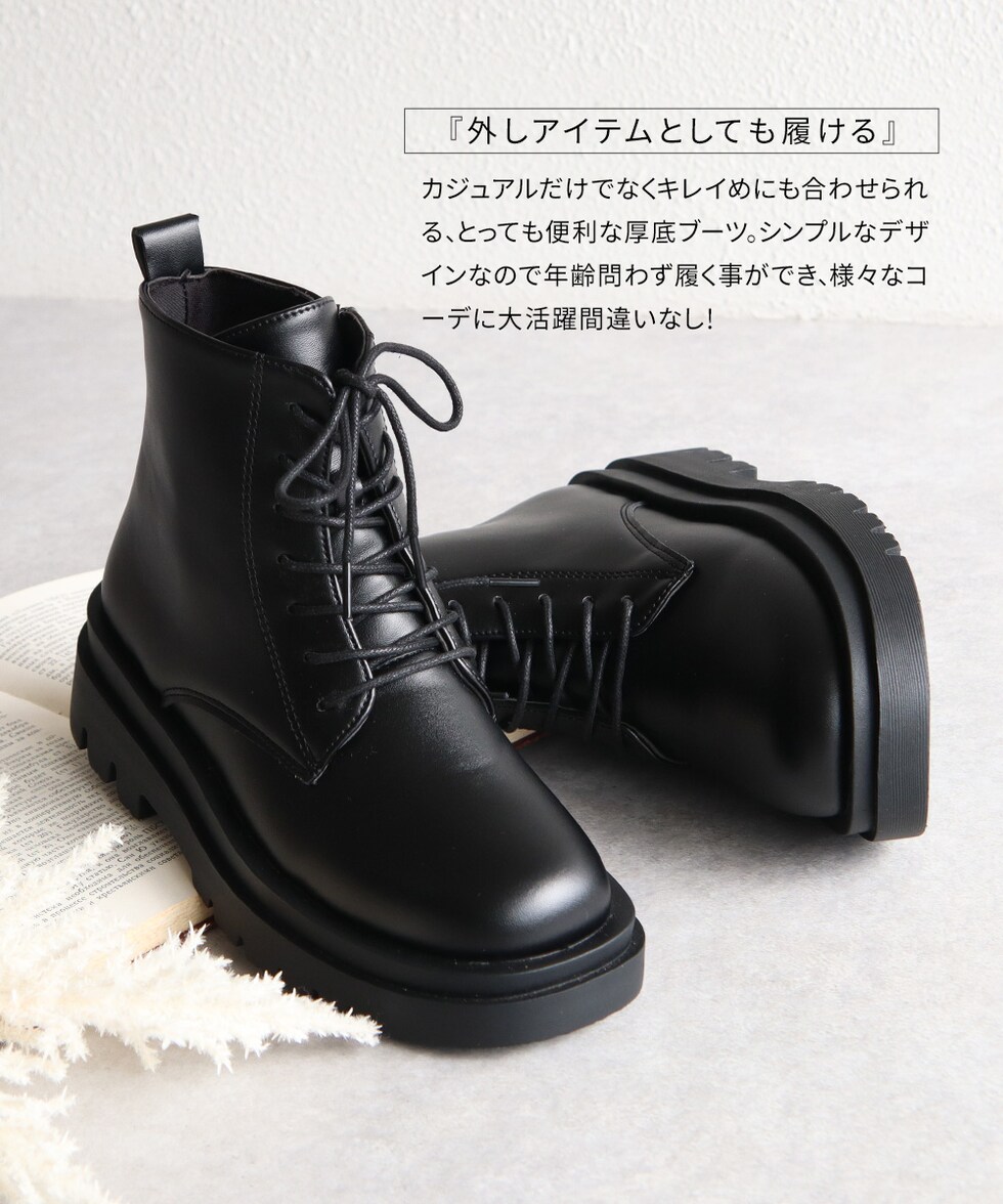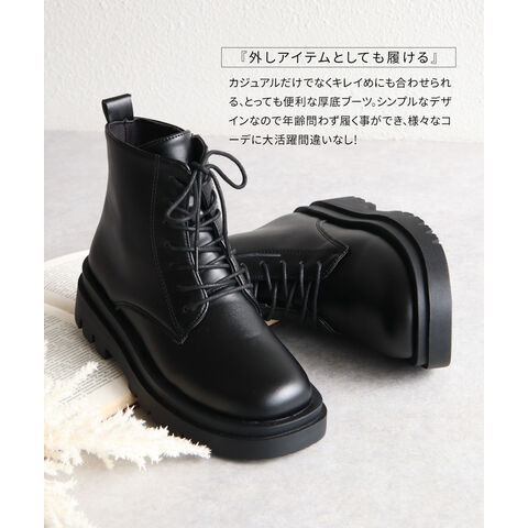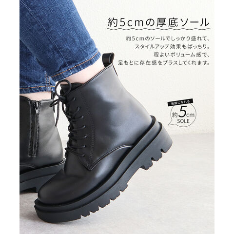 トレンドの“ゴツめシルエット”が魅力の厚底ショートブーツ。