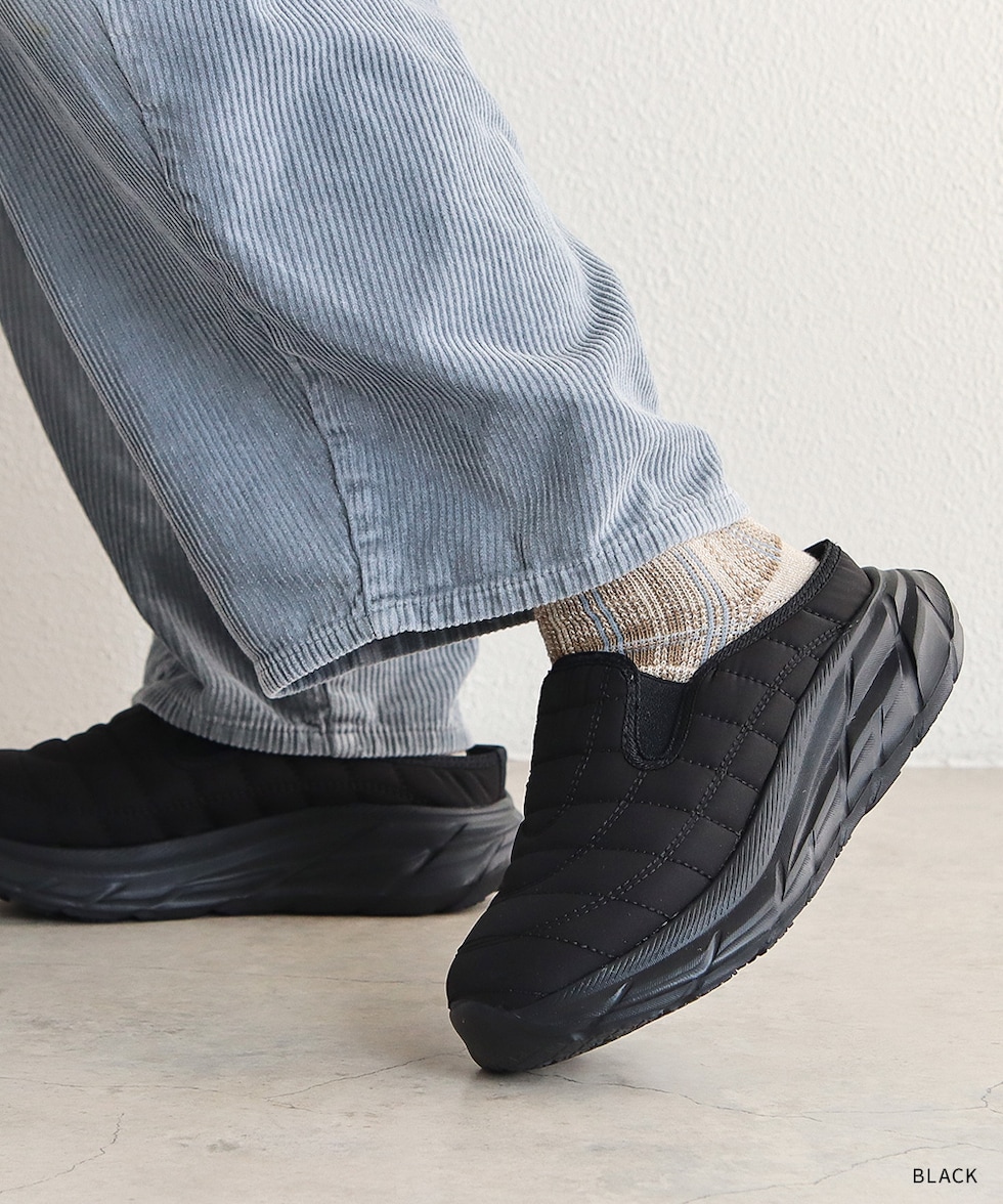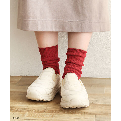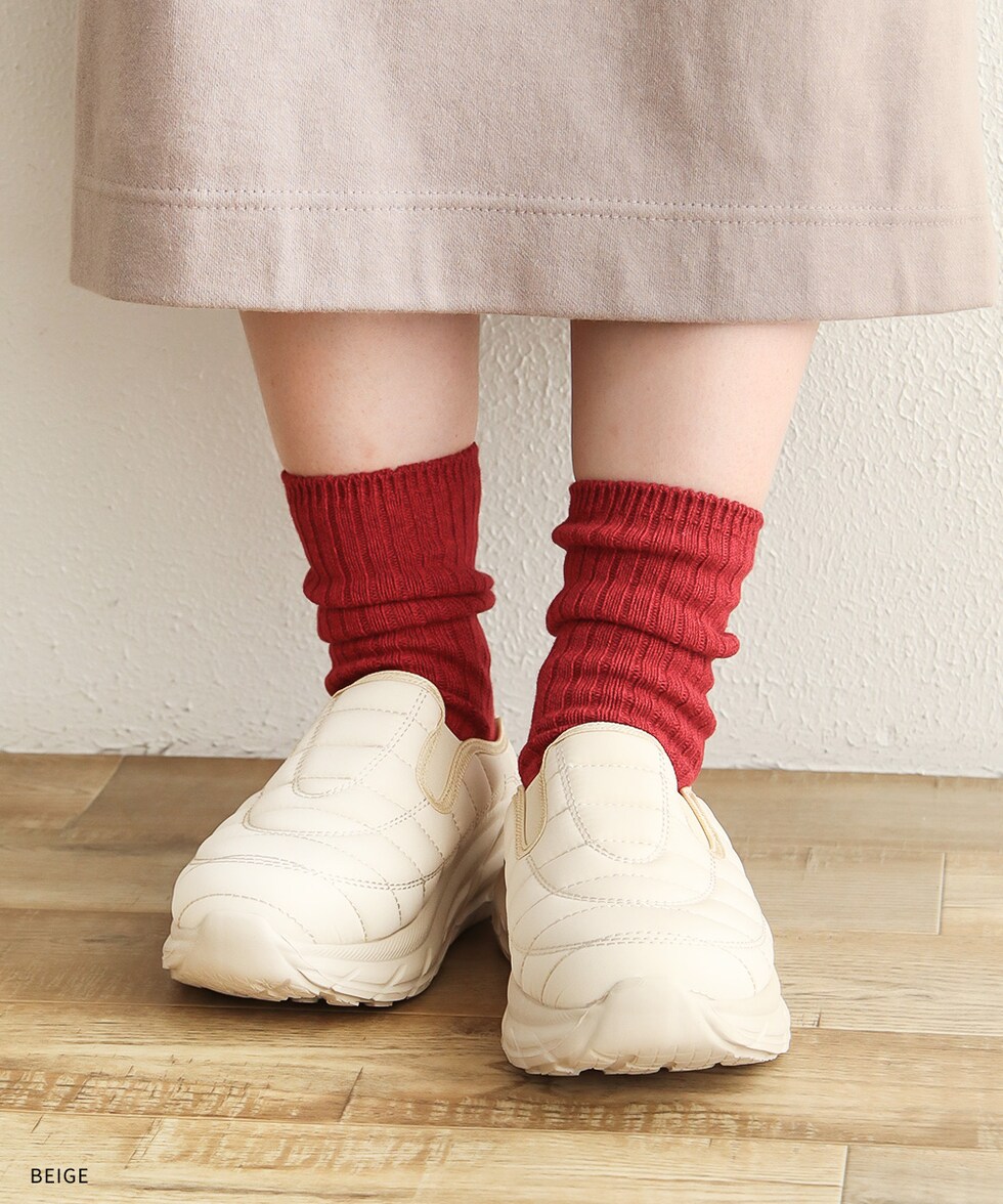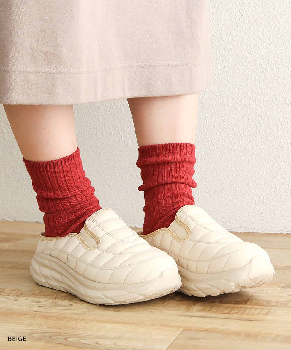 履き口にゴムがついて足入れしやすく、程よいフィット感。