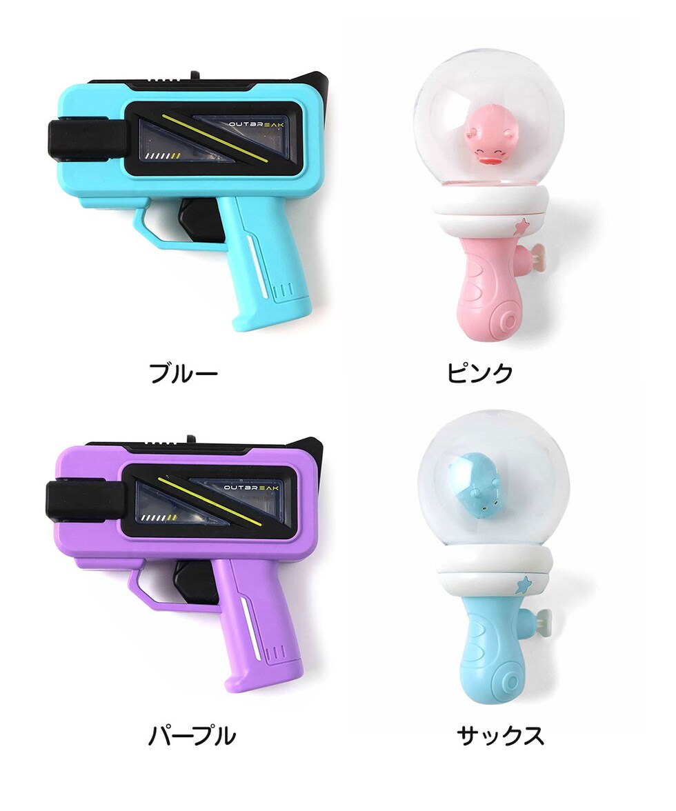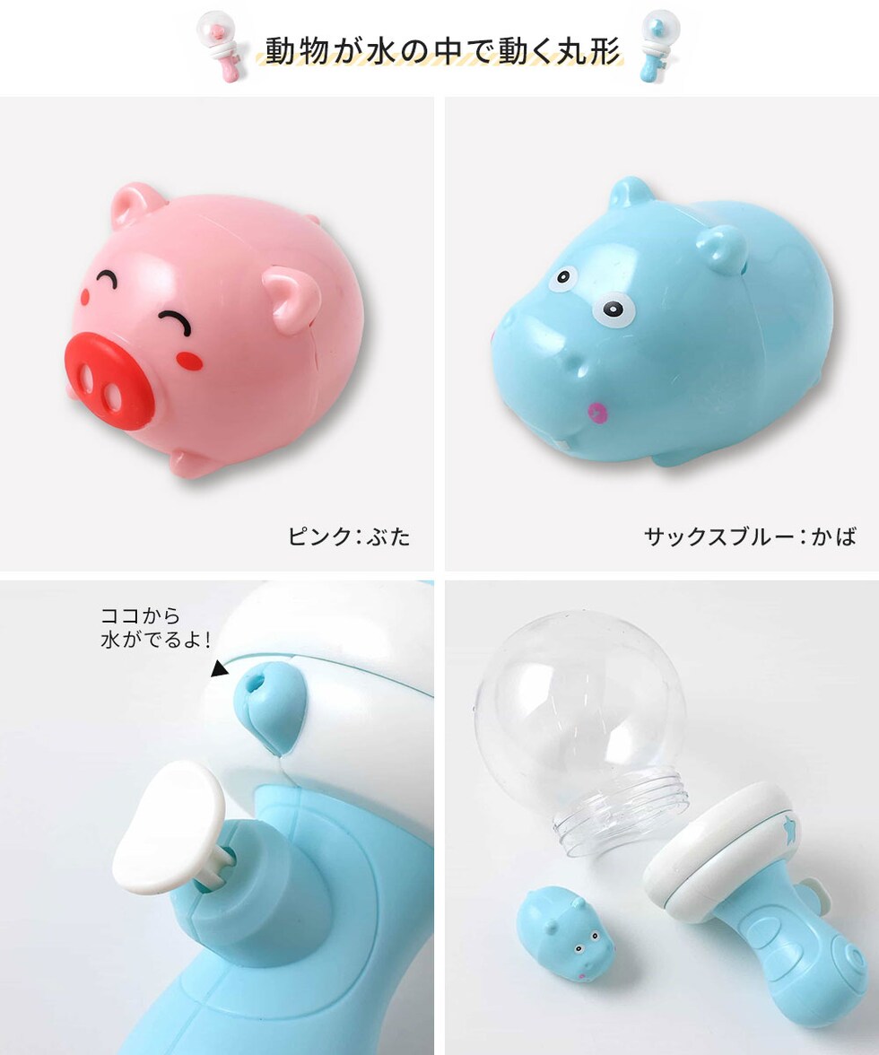 ブタさんとカバさんが水の中く丸形と、カッコいいピストル型の2タイプで展開。