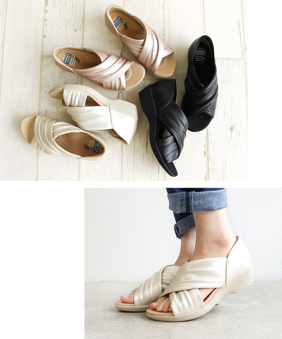 トパーズ アルコ コンフォート サンダル レディース 幅広 3e シューズ 母の日 靴 ブラック ゴールド ピンク ベージュ 2338 topaz