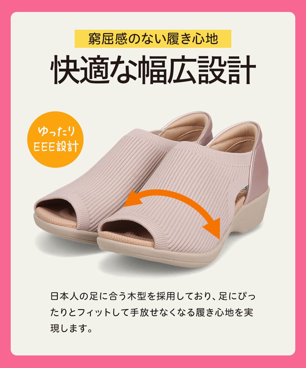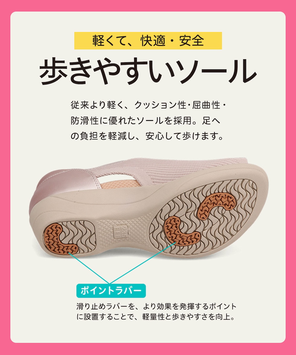 発売当初はソフトスニーカーを開発・販売しておりましたが、1992年には『軽くて・歩きやすく・疲れにくい』といった"コンフォート"機能を前面に打ち出した商品展開を開始し、女性向けコンフォートシューズの先駆け的存在として、多くのお客様にご愛顧いただいております。