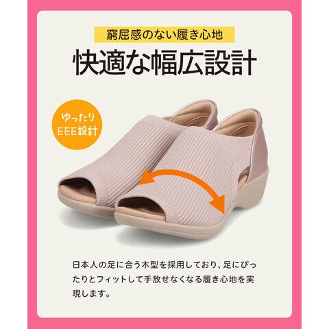 ゆったり幅広 EEE ラストを使用した「トパーズ」のウォーキングサンダル。