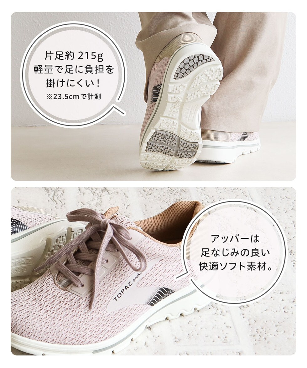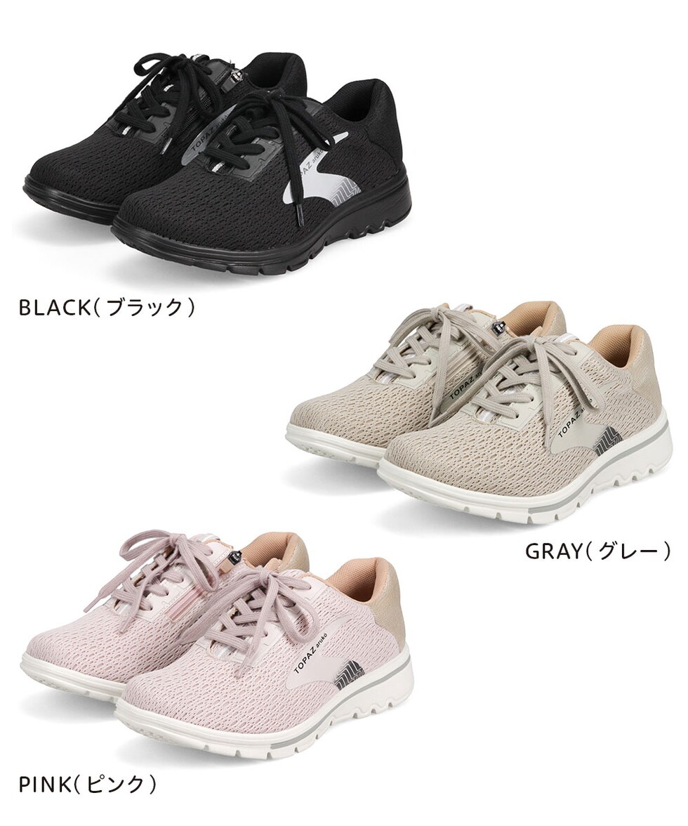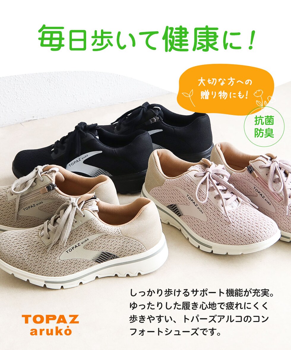 トパーズアルコ コンフォートシューズ レディース 軽量 幅広 3e ウォーキング 靴 黒 ブラック グレー ピンク TOPAZ aruko 7407