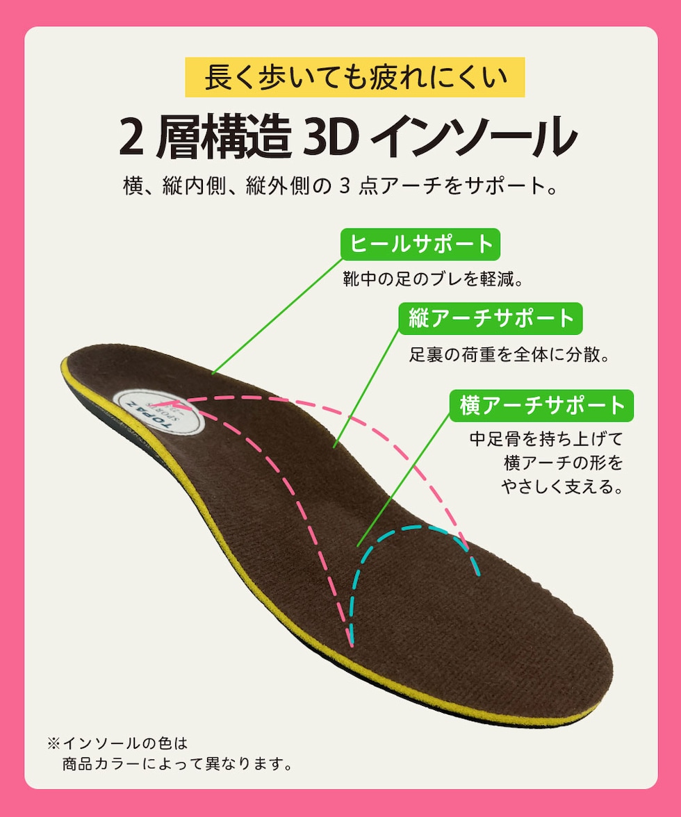 発売当初はソフトスニーカーを開発・販売しておりましたが、1992年には『軽くて・歩きやすく・疲れにくい』といった"コンフォート"機能を前面に打ち出した商品展開を開始し、女性向けコンフォートシューズの先駆け的存在として、多くのお客様にご愛顧いただいております。