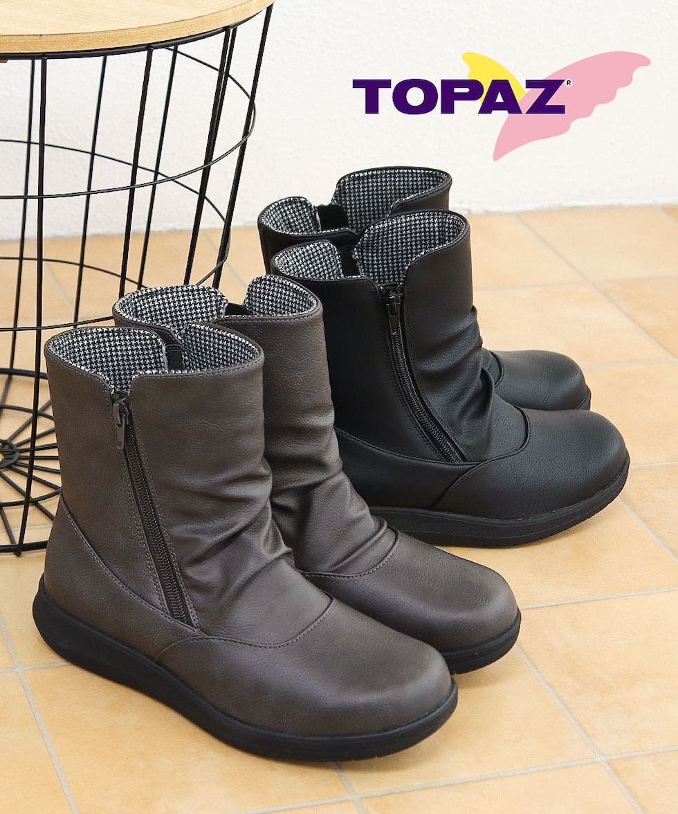 トパーズ ブーツ レディース 歩きやすい ショート 防水 5e コンフォートシューズ 幅広 ゆったり ファスナー 婦人靴 黒 ブラック ダークグレー TOPAZ 5515