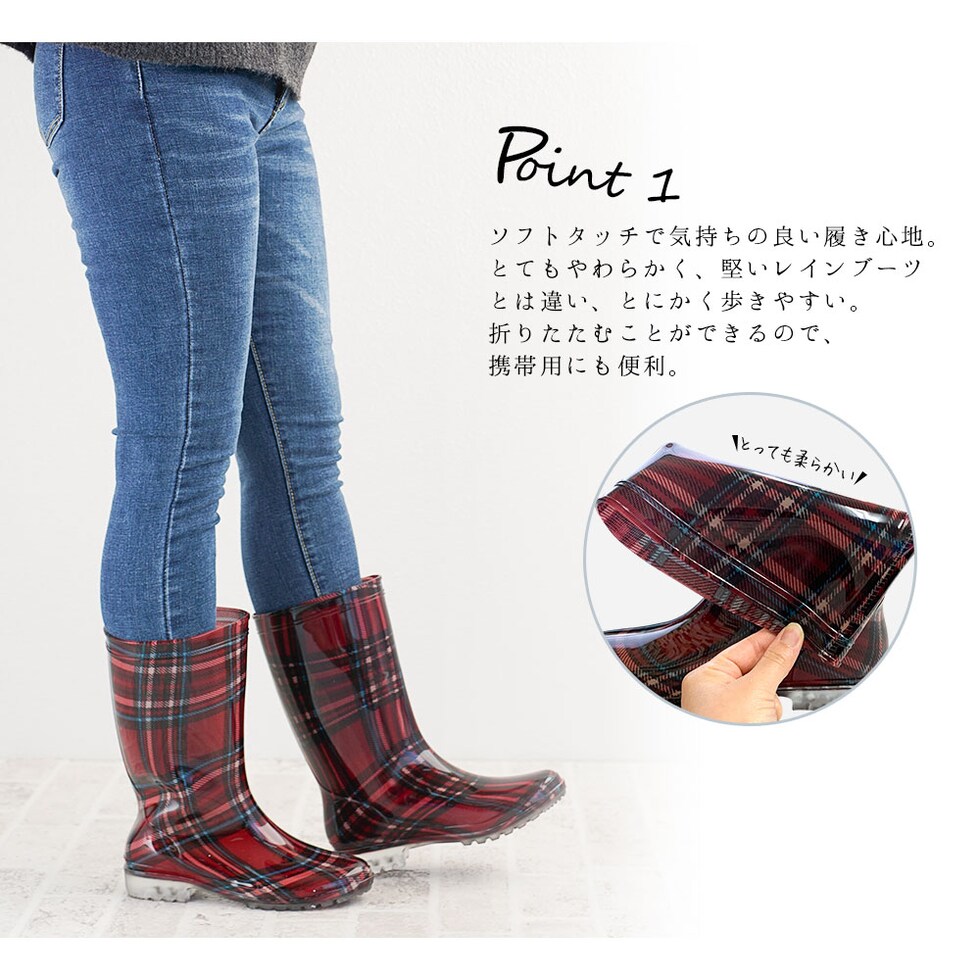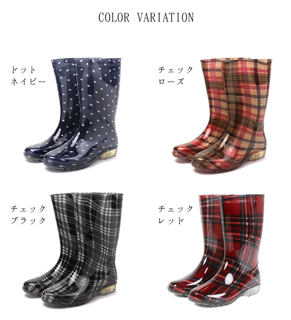 レインブーツ レディース ロング 長靴 レインシューズ 雨 梅雨対策 雪 ガーデニング アウトドア 花柄 ドット チェック 完全防水 PVC 軽量 8120