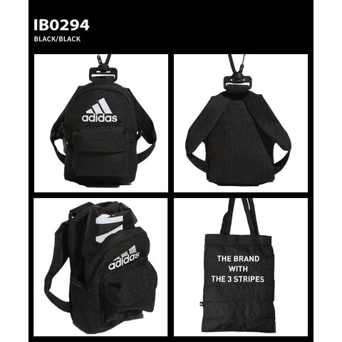 アディダス エコバッグ 折りたたみ サブ カラビナ付き パッカブル コンパクト ミニリュック 買い物 鞄 収納 黒 ブラック adidas BUZ87